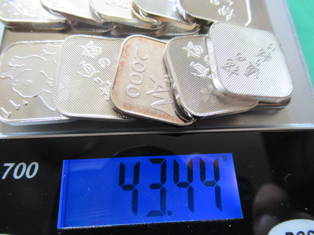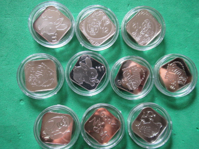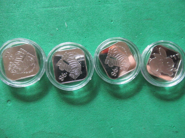 純銀メダル(99.9%) 小・角型10個セット 造幣局ミントセット取り出し プラケース入り 重量43.44g(ケースは含まず)