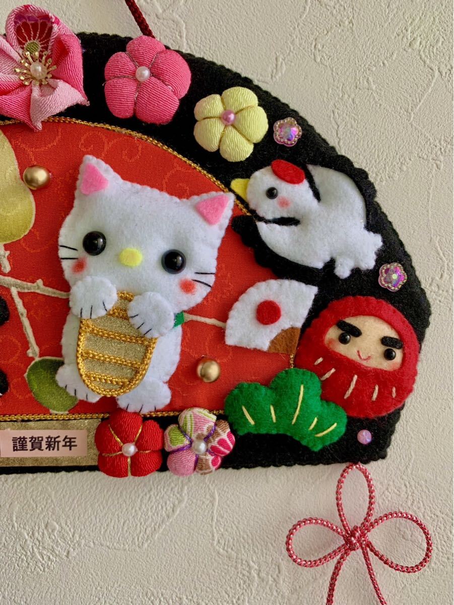 フェルト、ビーズ、ちりめん生地、綿、紐