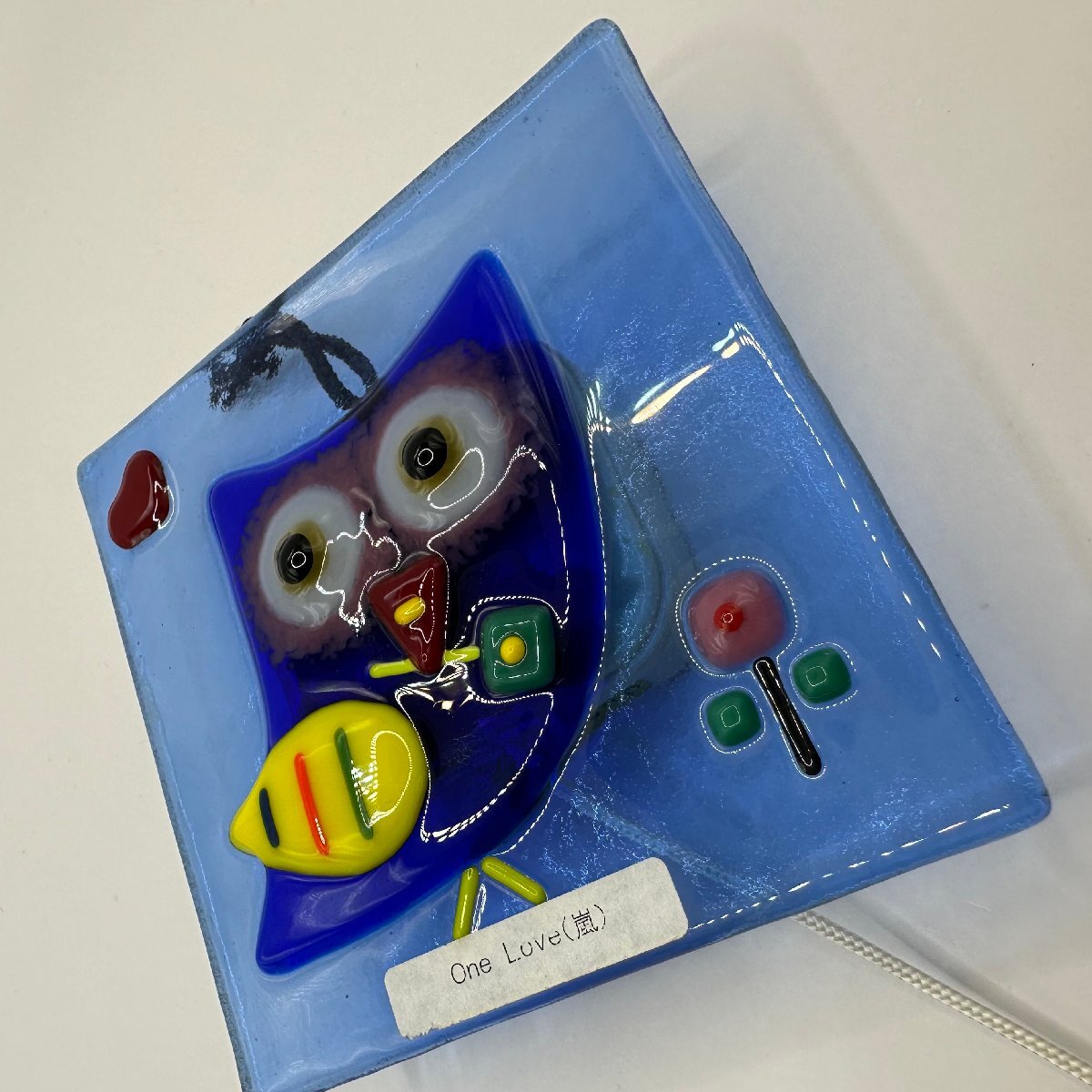 q449 壁掛け式 ふくろう ガラス細工 オルゴール 嵐 One Love ジャニーズ