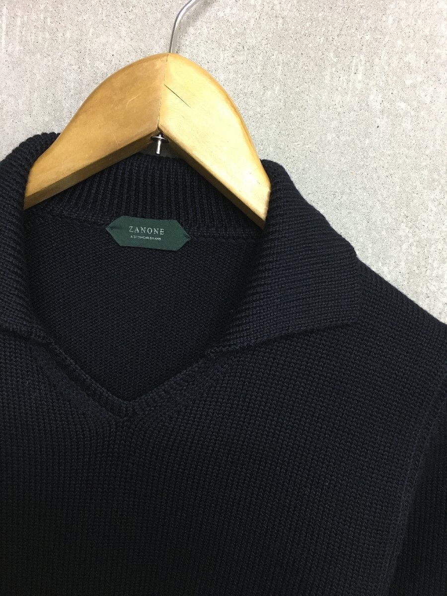 ◆BEAMS F 購入 美品 ZANONE ザノーネ スキッパー 良質 ニット シャツ サイズ46 NAVY クリーニング済み