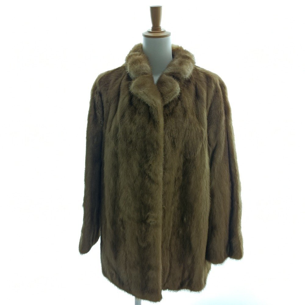 | 毛皮 ハーフコート MINK ミンク ファー ダークブラウン系 レディース ファッション セミロング ミドル丈 海外製アウター 現状 中古 |