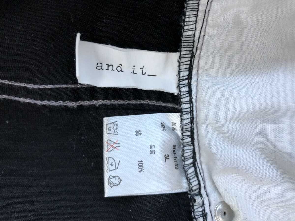 アンドイット And it_ ストリート ワーク ボタンフライ アンクル丈 ハイウエスト サルエル パンツ シンチバック メンズ 綿100% 3L 黒 です。