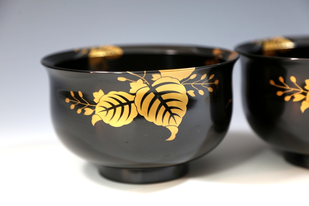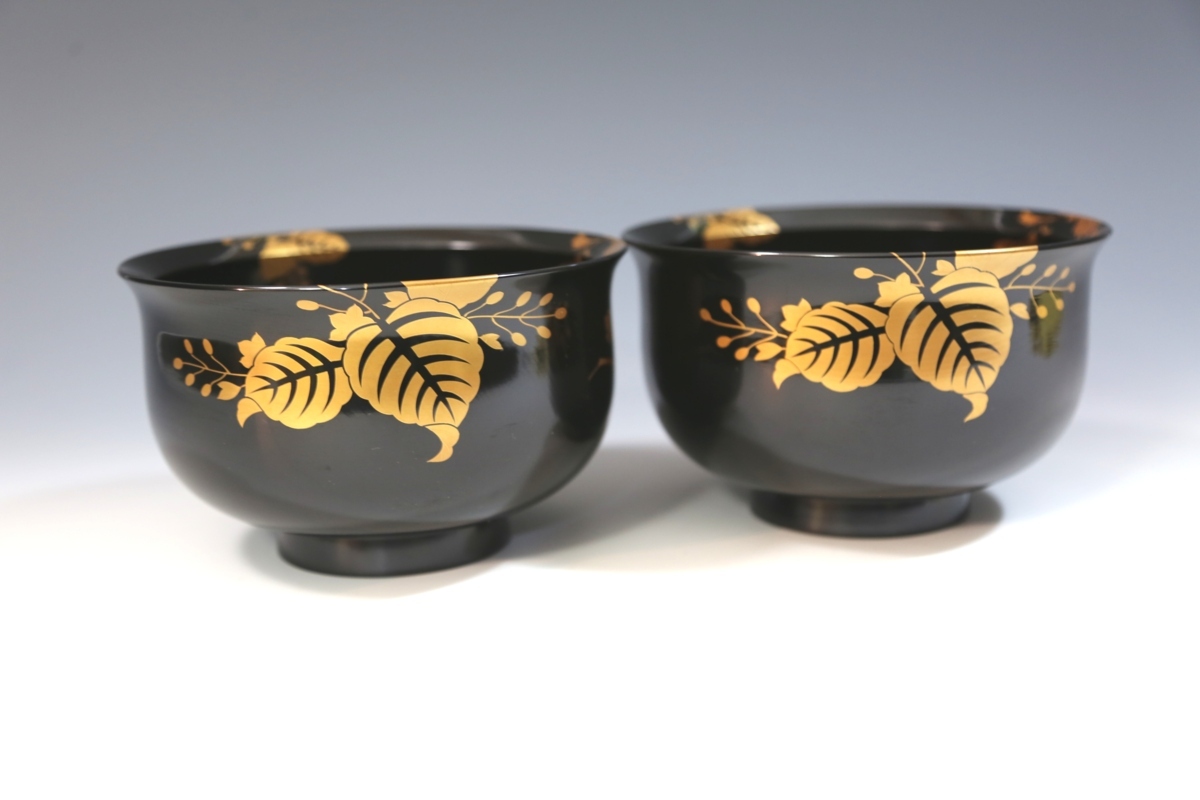 ★★★ アンティーク 木製 菊と桐蒔絵 盃洗 一対 ② ★★★ 57