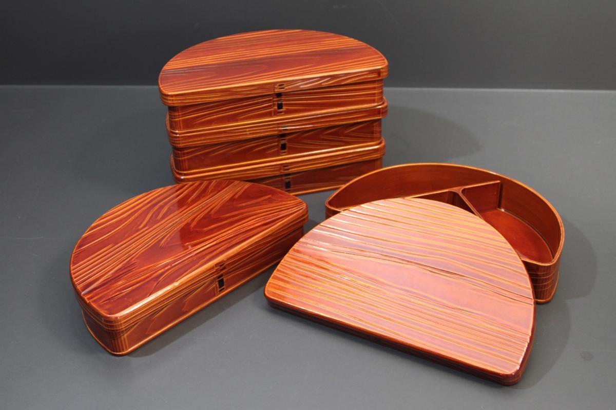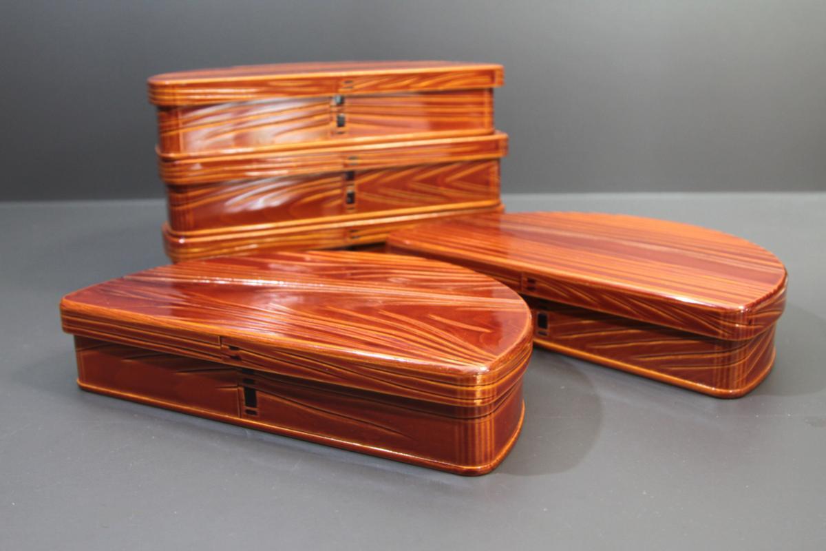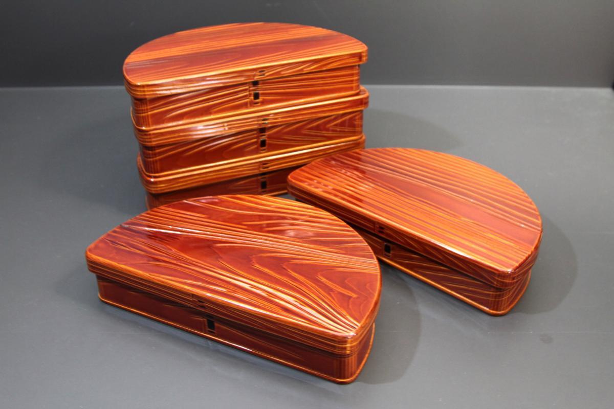 ★★★ 春慶塗 木製 ヘギ目 半月弁当箱 五客 ① ★★★