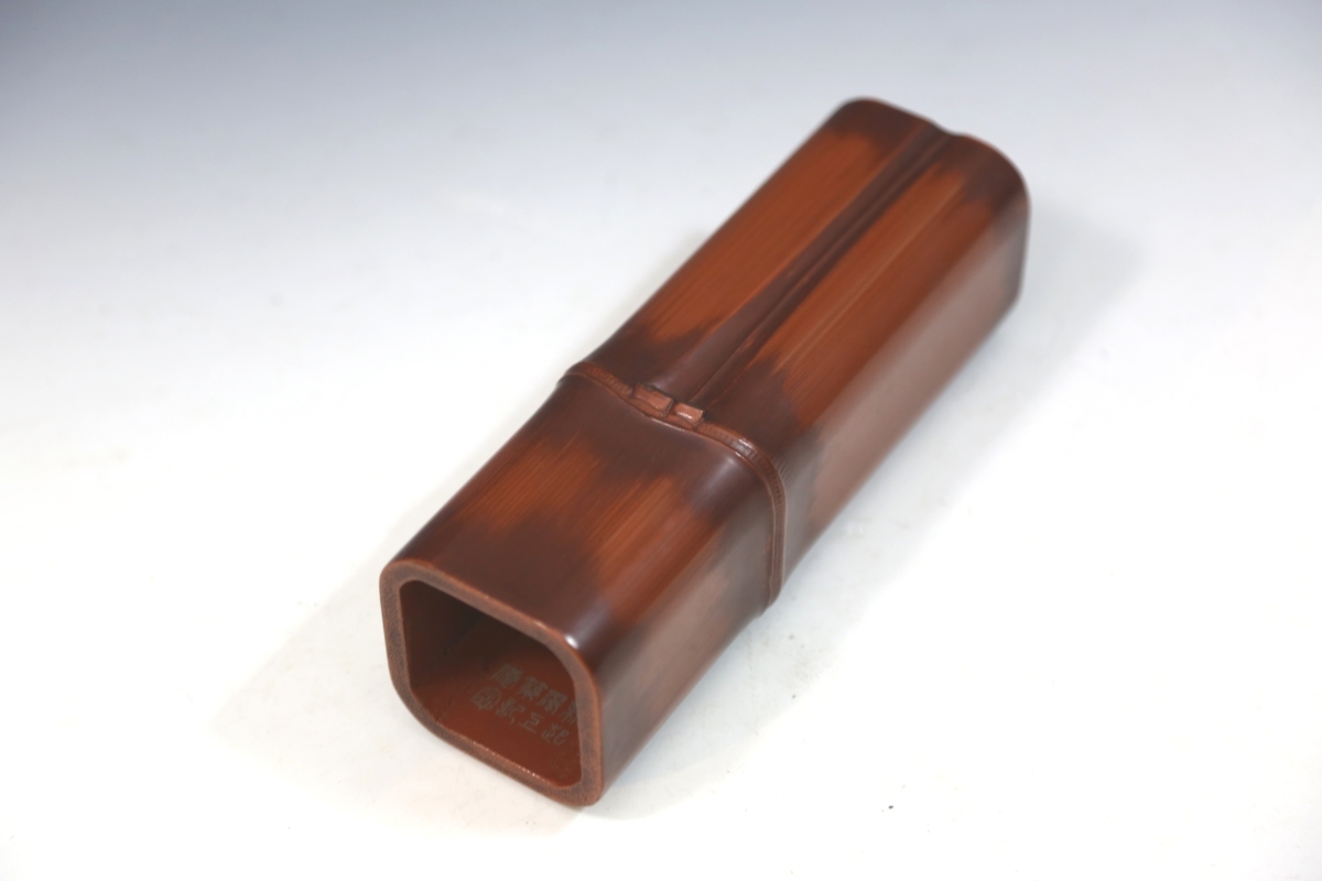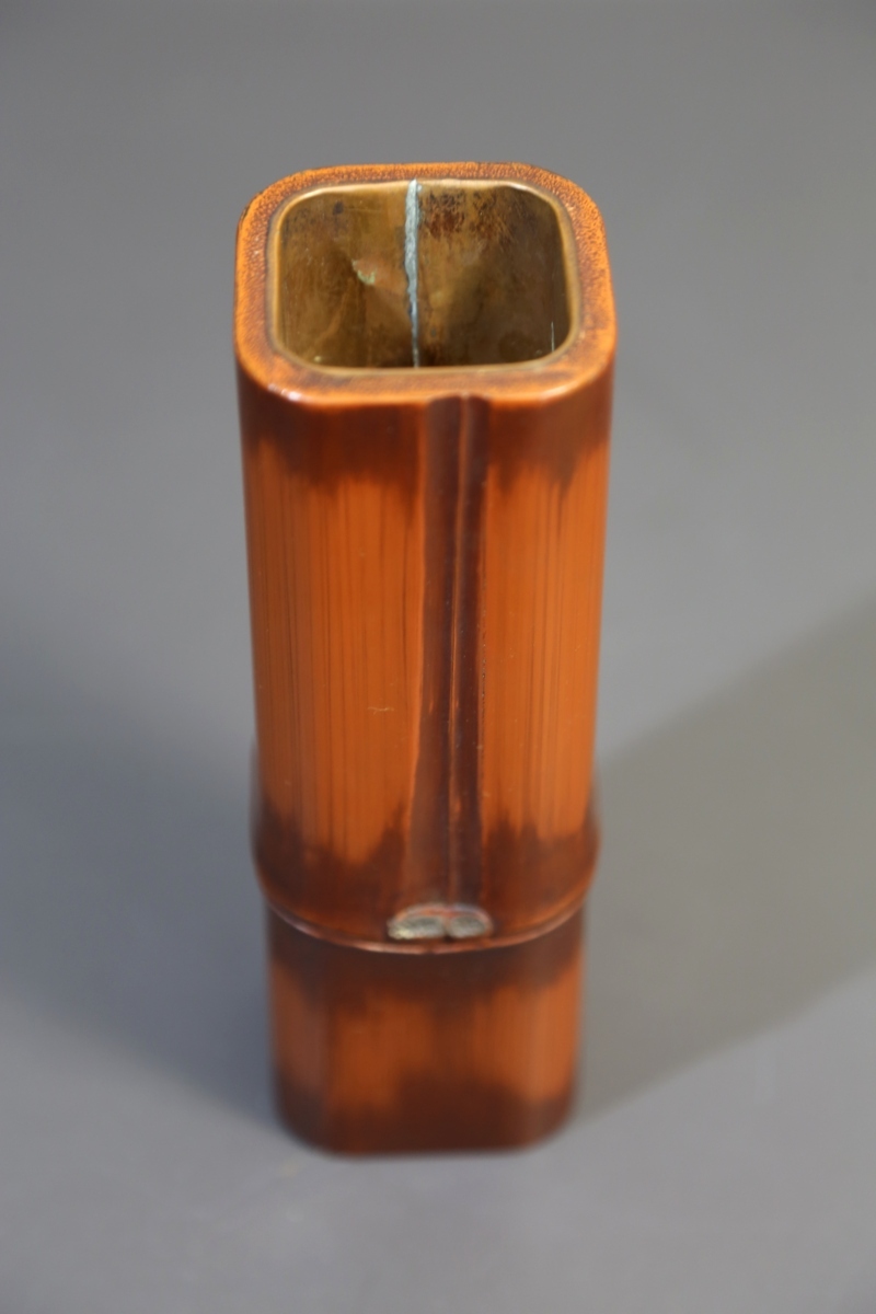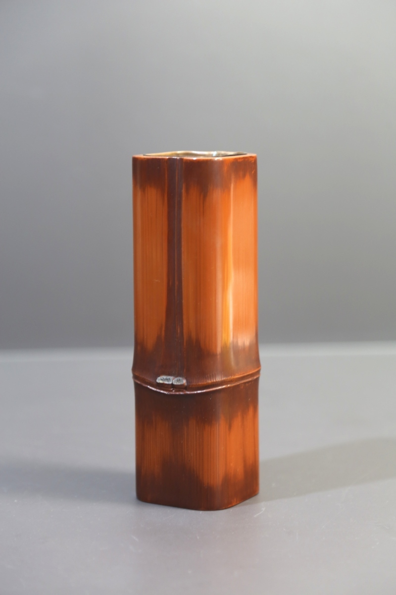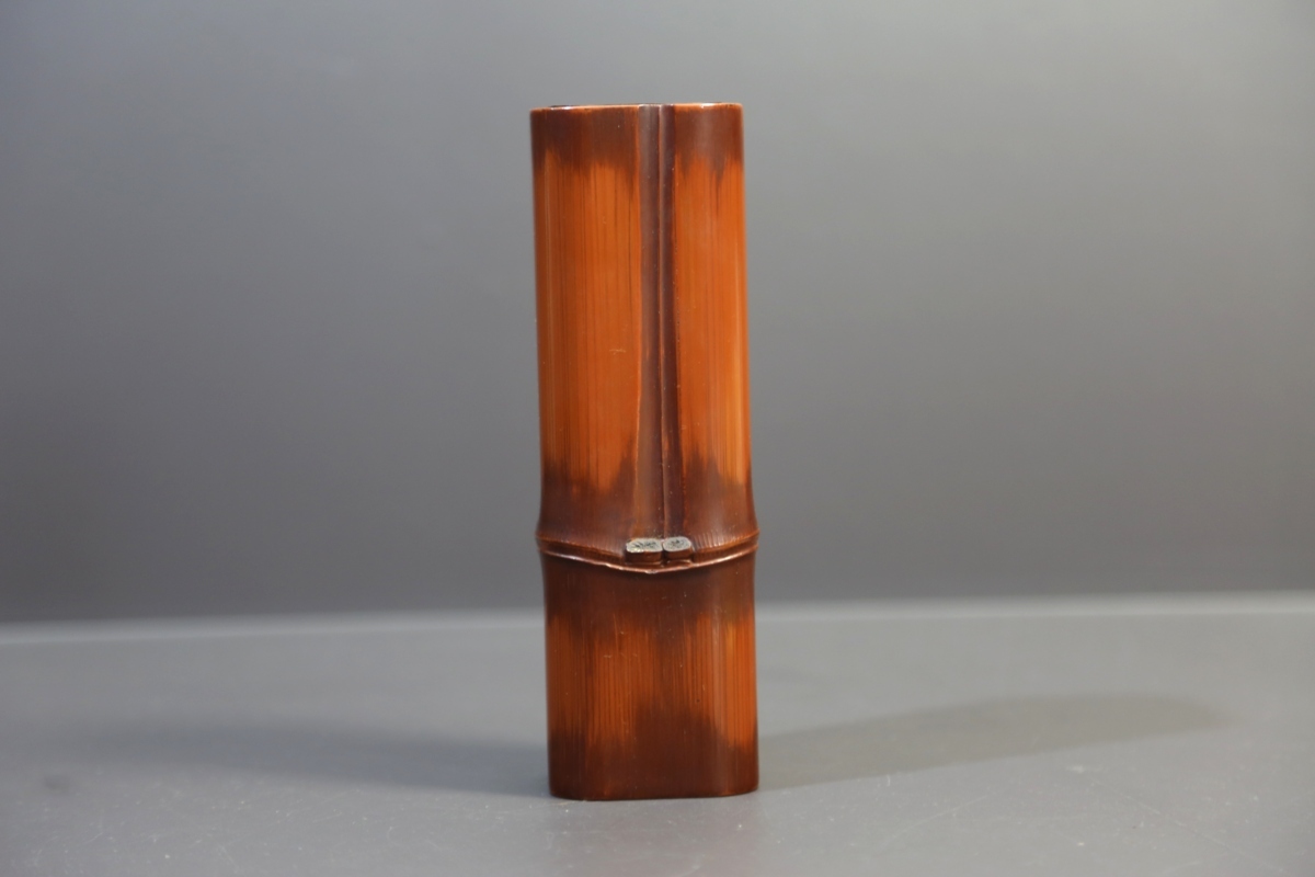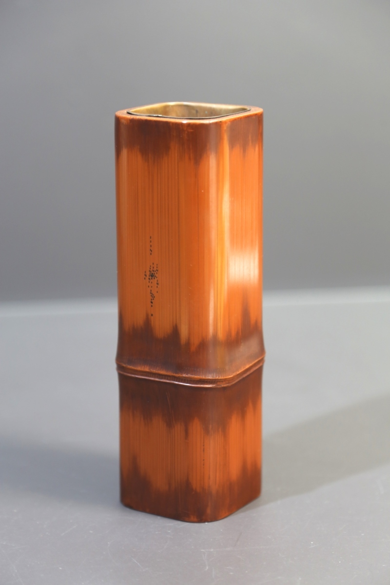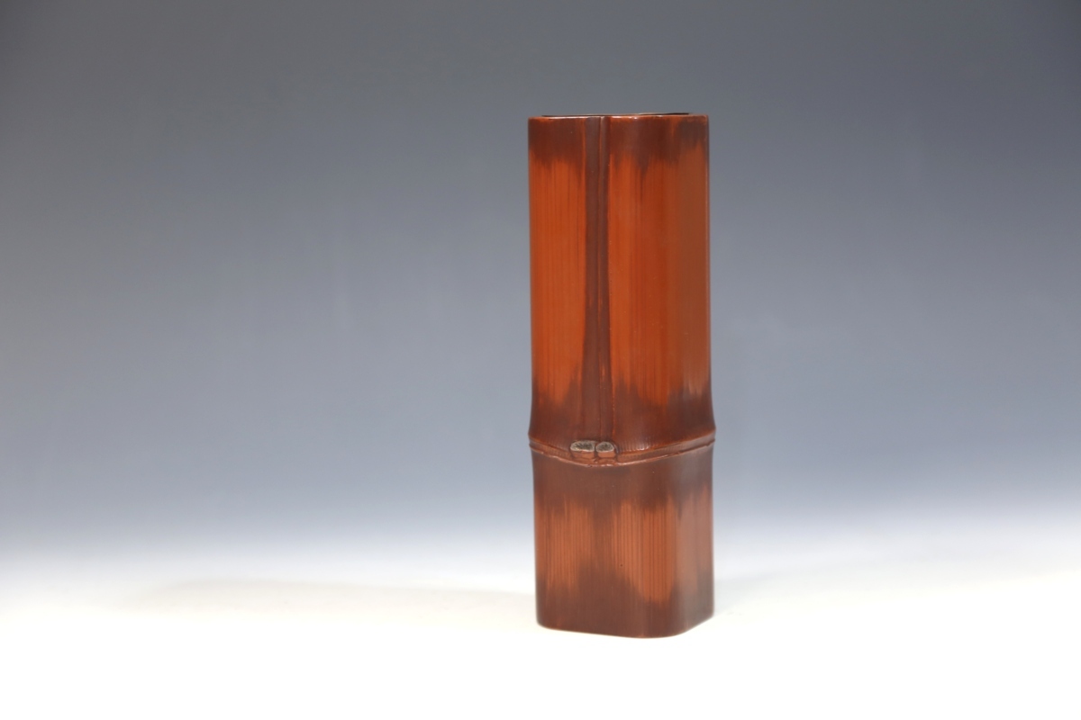木と漆で作られた、リアルな竹の様な花生けです。経年ありますが状態良好です。横6.5cm、縦6.3cm、高さ19.5cm。ノークレーム、ノーリターンでお願い致します。この他にも出品しておりますのでご覧下さい。ここをクリック