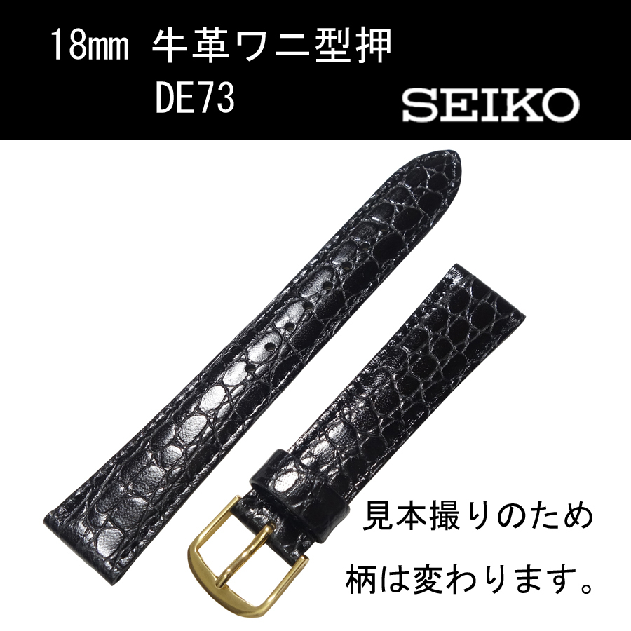 | 新品未使用国内正規品 牛革ワニ型押し メーカー:セイコー メーカー品番:DE73 希望小売価格:3,000円+税 カン幅:18mm 美錠幅:15mm 厚み:2.7mm 長さ:美錠側 70mm(美錠含まず) 剣先側 115mm 色:黒 形状:小甲丸タイプ 裏材:テグラン 美錠材質:アルミ 現在金色の尾錠がついておりますが、御希望で銀色に交換させていただきます。 尾錠のデザインが変わる場合があります。 特にご連絡がない場合は写真の現状の金色での発送となります。 | ||