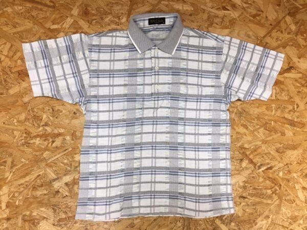 EX-Club イーエクスクラブ レナウン レトロ スポーツ 爽やか チェック 半袖ポロシャツ メンズ コットン100% M ライトグレー です。