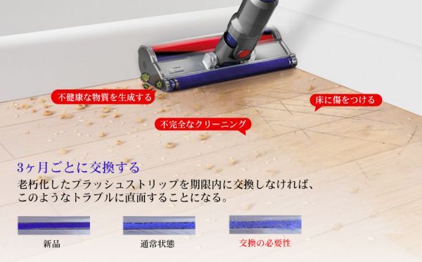 ■ソフトプラッシュストリップが破損や摩耗したりすると、掃除機ヘッドがスムーズに動かなくなりますので定期的に交換することで性能が改善します。