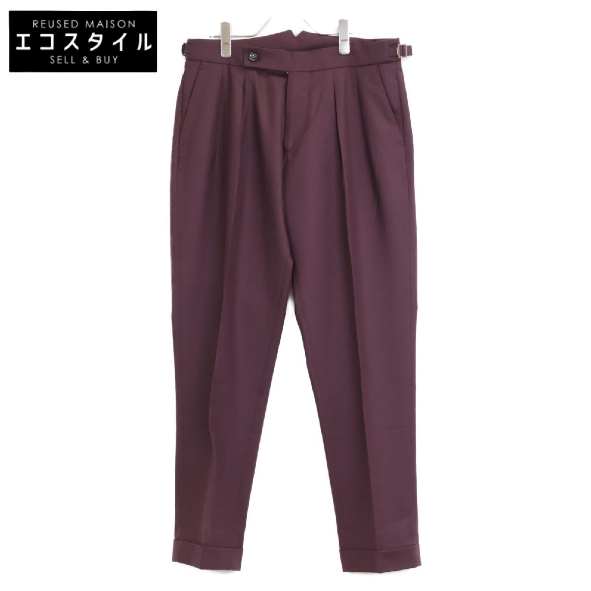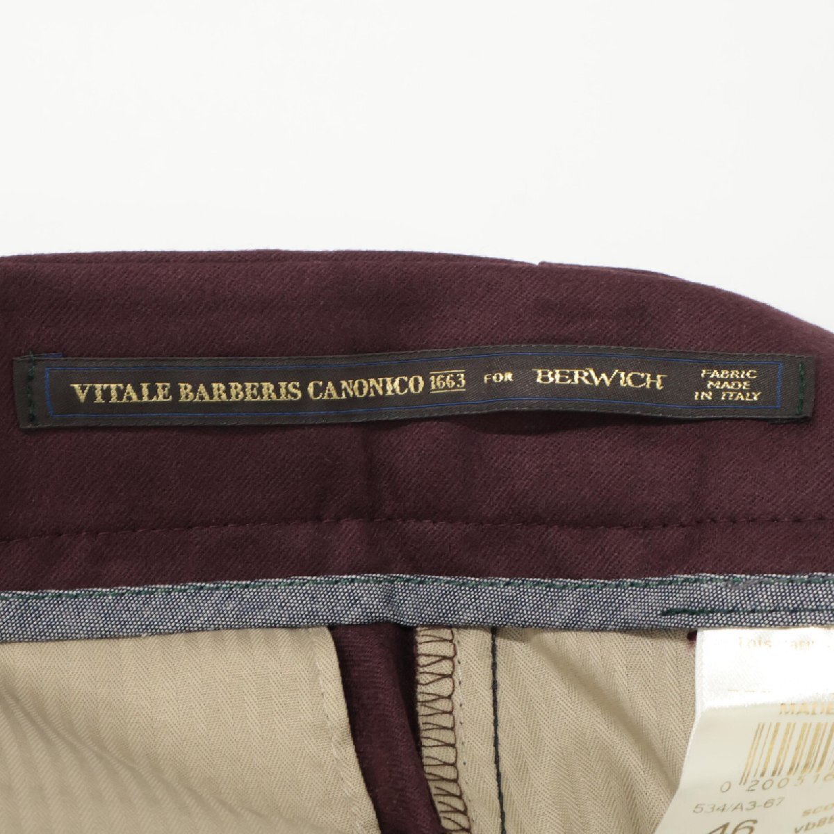 BERWICH ベルウィッチ VB8996 レッド SCOTCH 2プリーツ アジャスター付き ウール パンツ ワインレッド 46 ボトムス ウール メンズ 中古