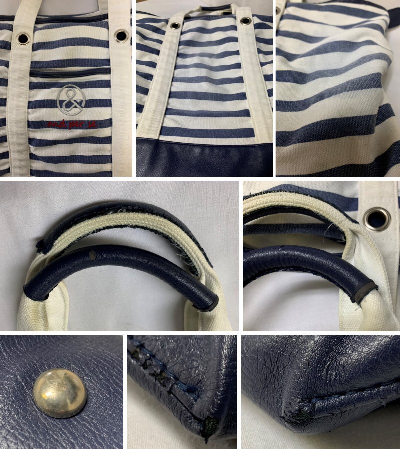 ・バッグ持ち手に破れ、角にスレ、破れがあります。