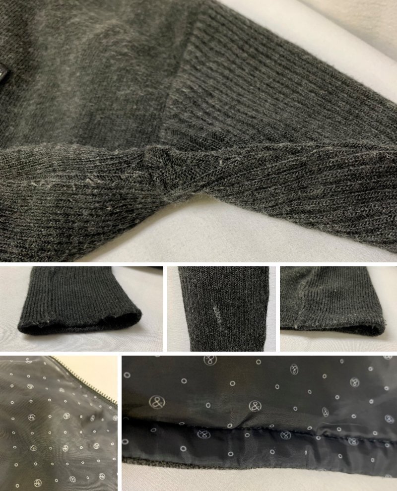 ・セーター全体に毛玉、毛羽立ち、スレ、色あせ、汚れがあります。