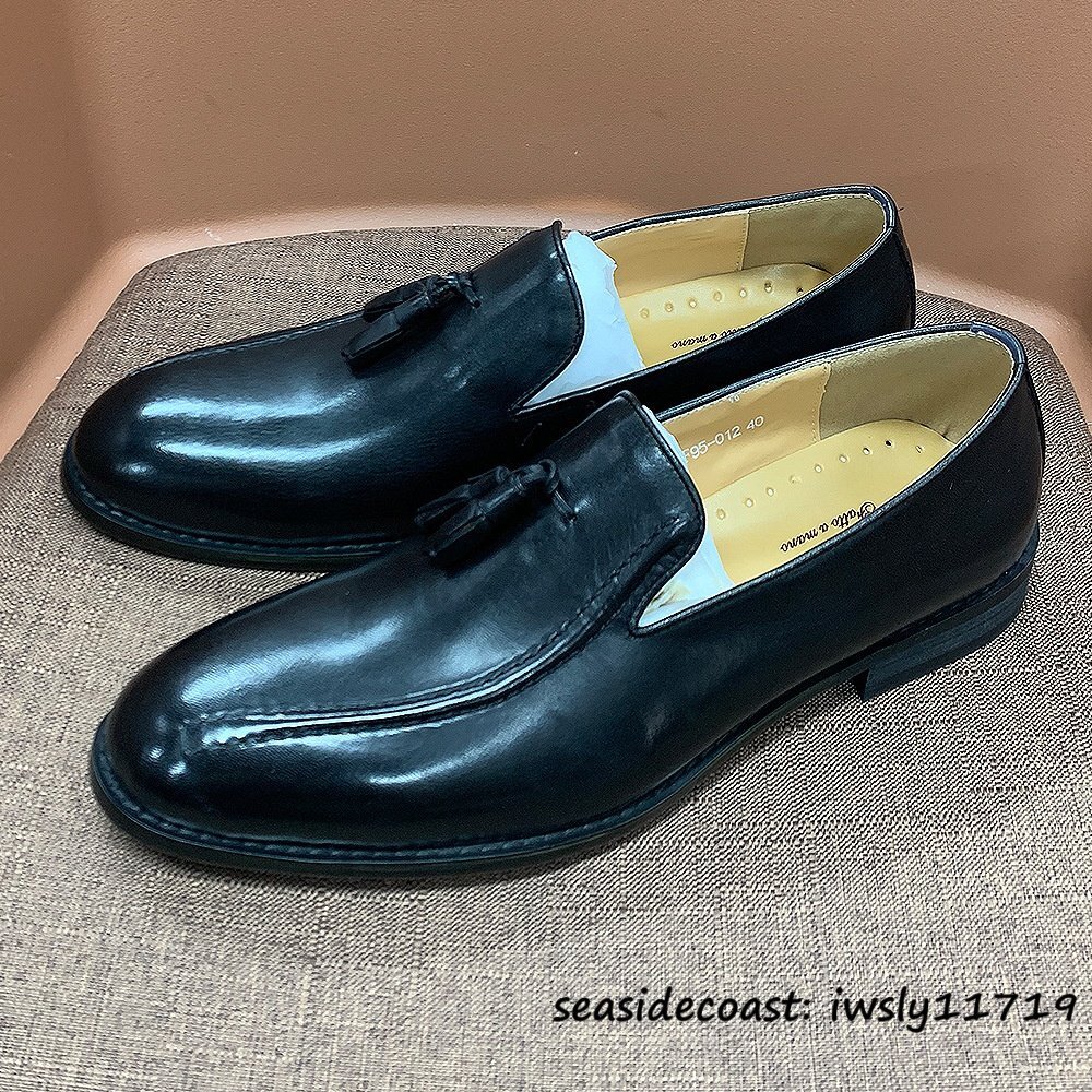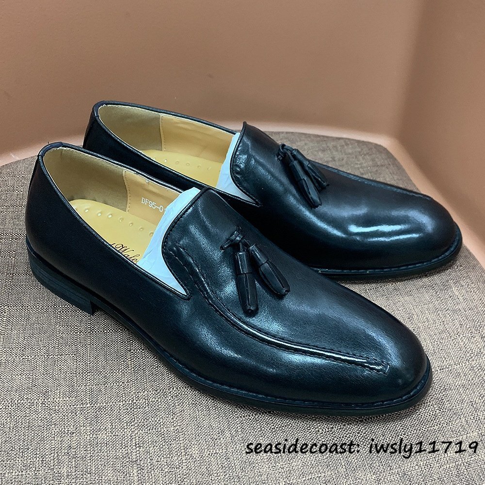 最高級◆レザーシューズ ビジネスシューズ ローファー スリッポン 職人手作り 本革 レザーシューズ 牛革 革靴 紳士靴 新品 ブラック 25.5cm