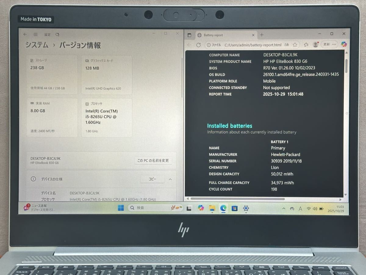 ・CPU: Core i5-8265U 1.6GHz, ターボブースト: 3.9GHz