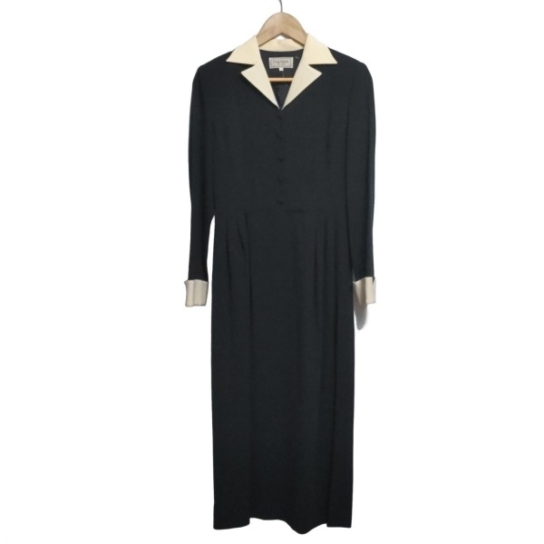 ポールスチュアート PaulStuart サイズ9 M - 黒×アイボリー レディース 開襟/長袖/ロング ワンピース