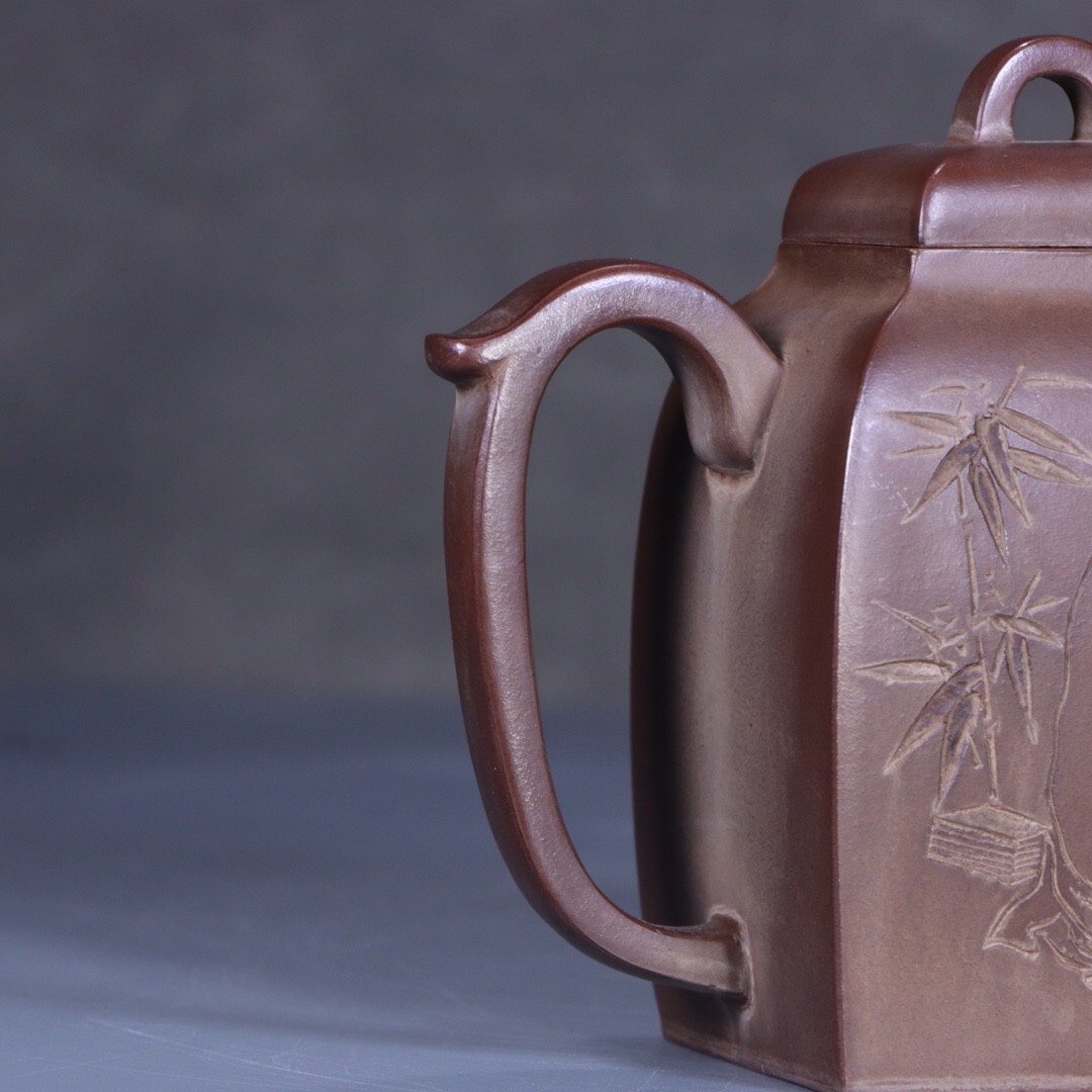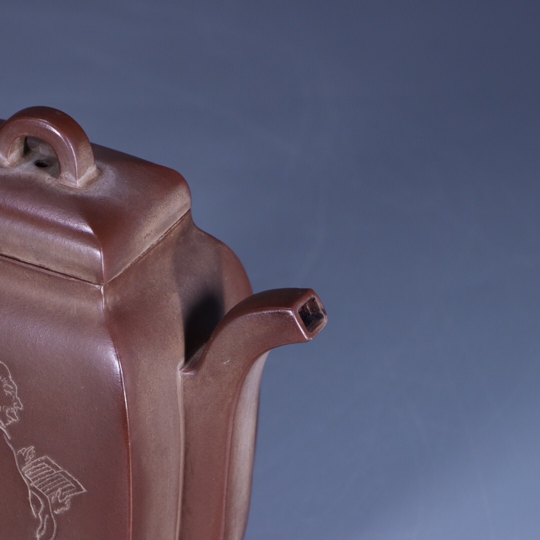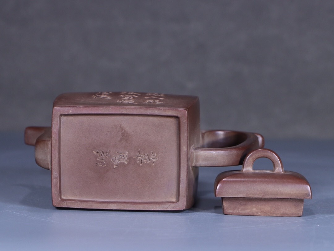「紫砂彫 刻絵漢方紫砂茶壺 華鳳翔銘 清時代」陶磁器 急須 茶道具 古賞物 中国古美術 旧蔵出