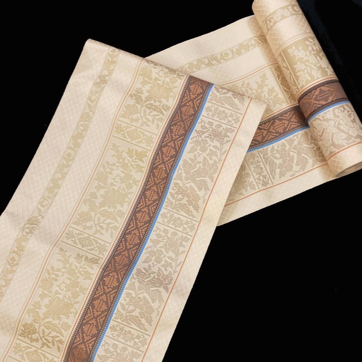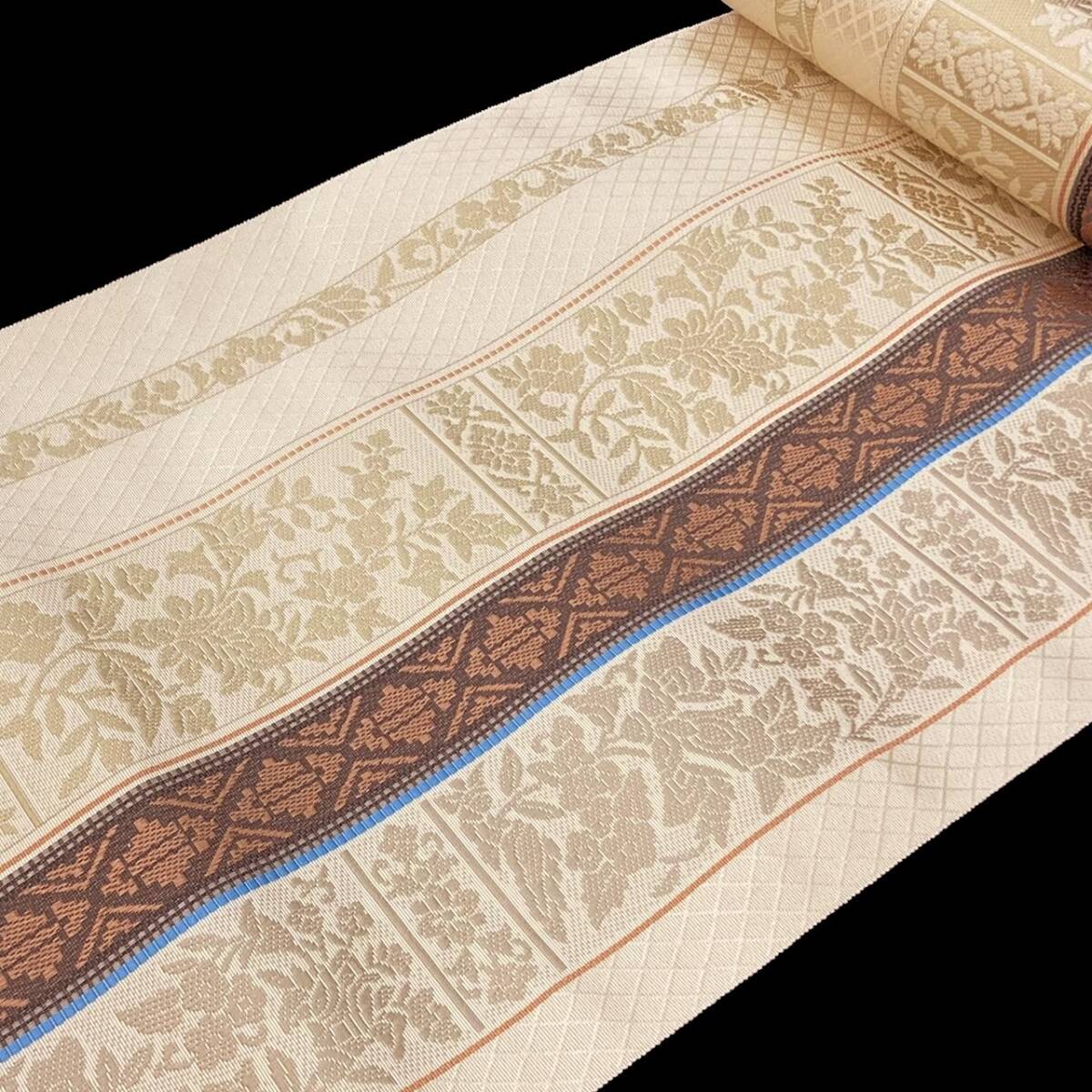 博多織では定番の間道柄に、様々な文様を組み合わせて織り上げられたシリーズ。