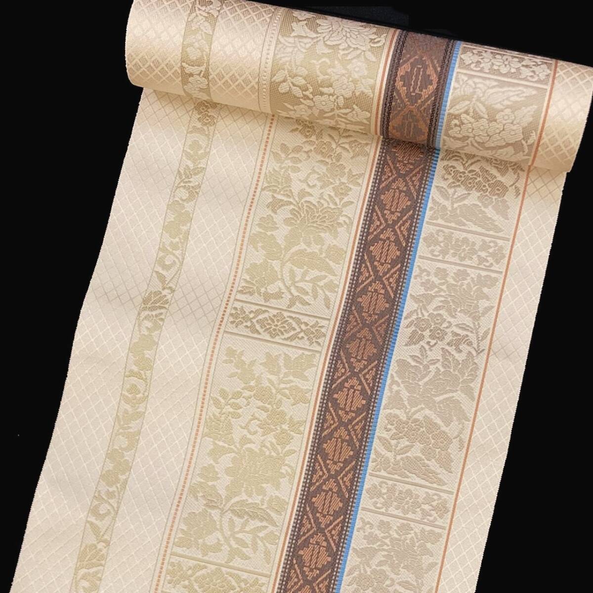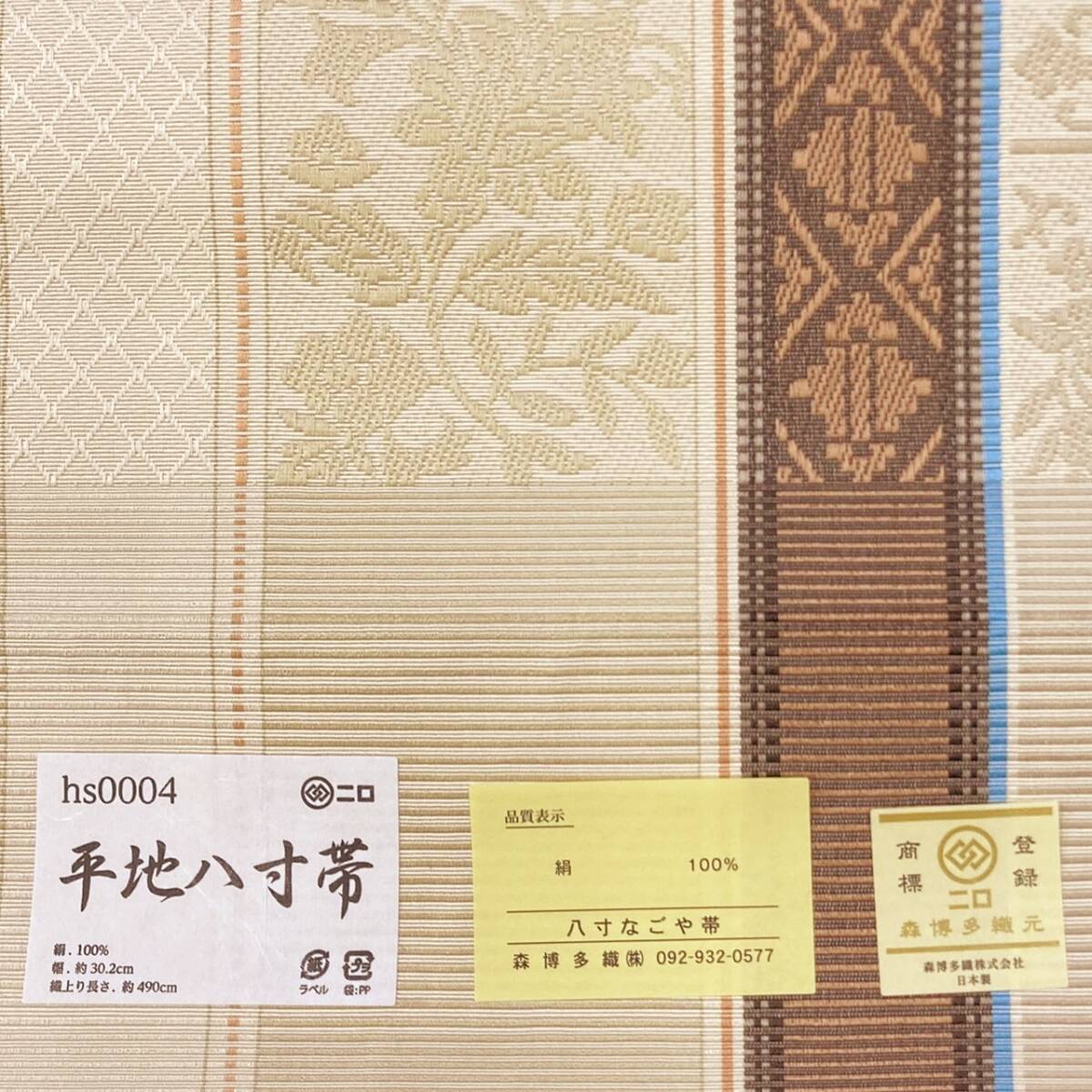 【送料無料】 新品 未仕立て品 名古屋帯 博多織 間道 森博多織 八寸帯 平地八寸 正絹 日本製 no-mo-37