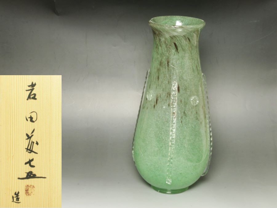 ■三和堂■岩田藤七 硝子花生 共箱 ガラス工芸 花瓶 花入 花器 大作38.2㎝ 文化功労者 工芸ガラスの巨匠!!