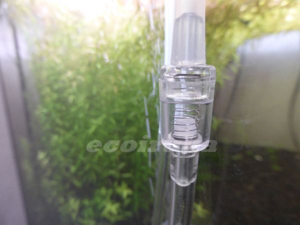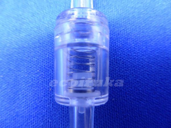 通常のチェックバルブはゴムやシリコンの弁によって逆流を防止する仕組みになっているので 圧力変化によって弁からエアーが抜け内部に水が溜まる事がよくあります。