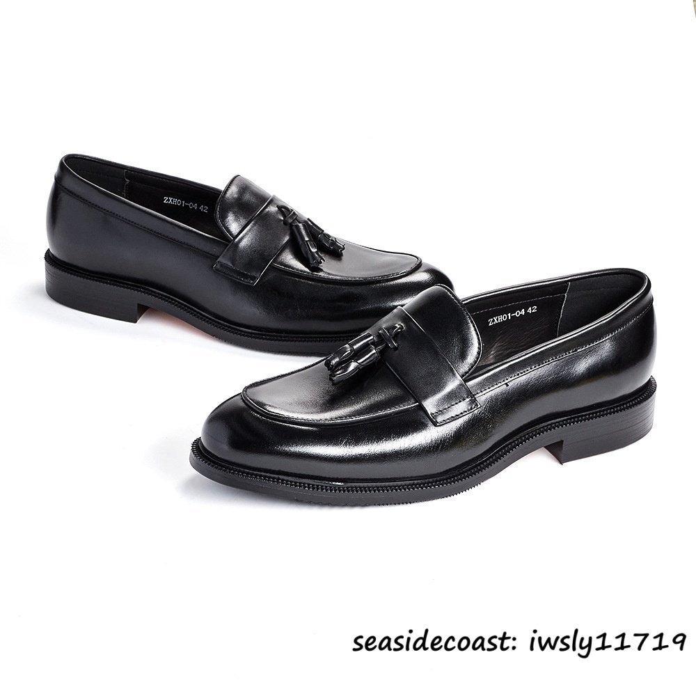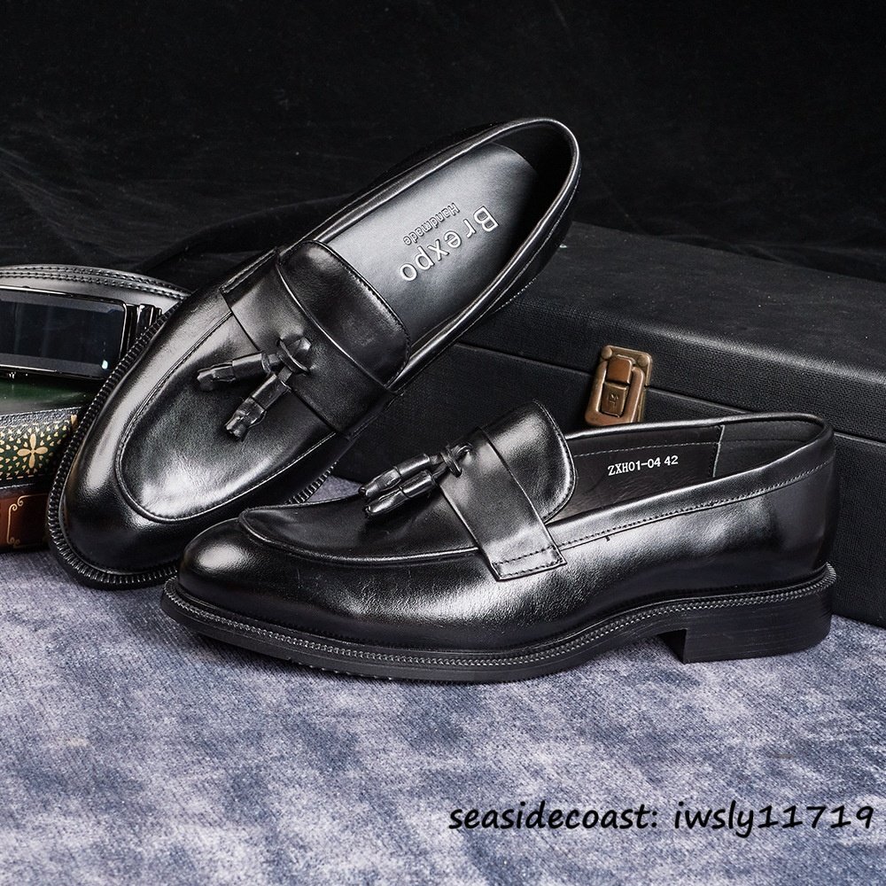定価10万超■レザーシューズ メンズ タッセルローファー 本革 職人手作り ビジネスシューズ 紳士靴 冠婚葬祭 牛革 革靴 ブラック 25.5cm