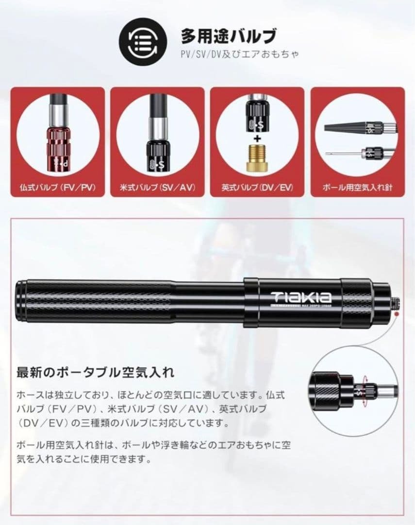 【自転車 空気入れ コンパクト-高圧で省力-260PSI】 この自転車用エアポンプの最大圧力は260PSIに達しています!最新デザインのブレイクスルーは、最適な角度で省時間省力のバランスを実現しました!これにより、従来のエアポンプに比べて大幅な省力化を実現し、充填効率を大幅に向上させることができます。 【英式/米式/仏式バルブに対応】 この自転車 空気入れは従来の製品を超えた画期的なデザインを採用しており、英式/米式/仏式バルブに対応しています。異なるバルブのタイヤに空気を入れることができます。同梱の針を使用して、バスケットボール、サッカー、浮き輪などのボールや空気入り玩具に空気を入れることができます。ホースは独立しています。ブラック+レッドというクラシックな色配合で、性能や外観など、すべてはより優れたパフォーマンスを実現しています。 【様々なシーンに対応】 このエアポンプだけで、同時に異なる充填のニーズを満たすことができます!例えば、マウンテンバイク、レーシングカー、自転車、子供用自転車、BMX、SUV、オフローダー車、ベビーカーなど。各種類のボール:バスケットボール、サッカーボール、ラグビー、風船、空気ビニール玩具など。これらのシーンでは、このミニ空気入れの優れた性能を確認することができます。 【長持ちで優れた品質】 このミニ空気入れは、高強度のアルミ合金製でできており、より丈夫で軽量、耐久性に優れており、折れたり破損したりしにくいです。表面は酸化処理されているので、より優れた耐食性を持っています。密封接続ですので、エア漏れの心配は一切ありません。 実物の写真は9枚目以降になります。説明と異なる場合がありますので、必ず写真をご確認ください。不明点はコメントくださいませ。 訳あり品のため、箱潰れ・ビニール破れ・開封痕・指紋などがある場合がございます。簡易検品のため、使用感や部品不足を見落としている可能性もあります。 完品をお求めの方はご希望に添えない場合がございます。 Amazon参考価格:2999円 即日発送(最安発送方法に変更あり) フォロー+購入希望コメントで100円お値引き ご購入前にプロフィールをご確認ください。 管理番号3 |