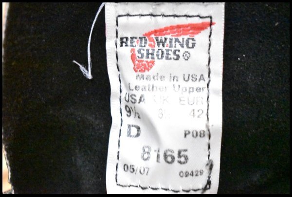 【9.5D 箱付 美品 07年】レッドウィング 8165 アイリッシュセッター 黒 ブラッククローム プレーントゥ 編み上げ ブーツ redwing HOPESMORE