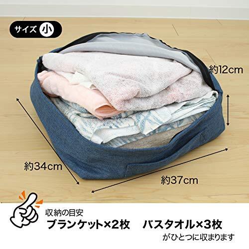サンベルム(Sanbelm) ふとん収納袋 布団収納 収納袋 クッション 布団 タオル ブランケット ネイビー 大小セット クッションになる収納
