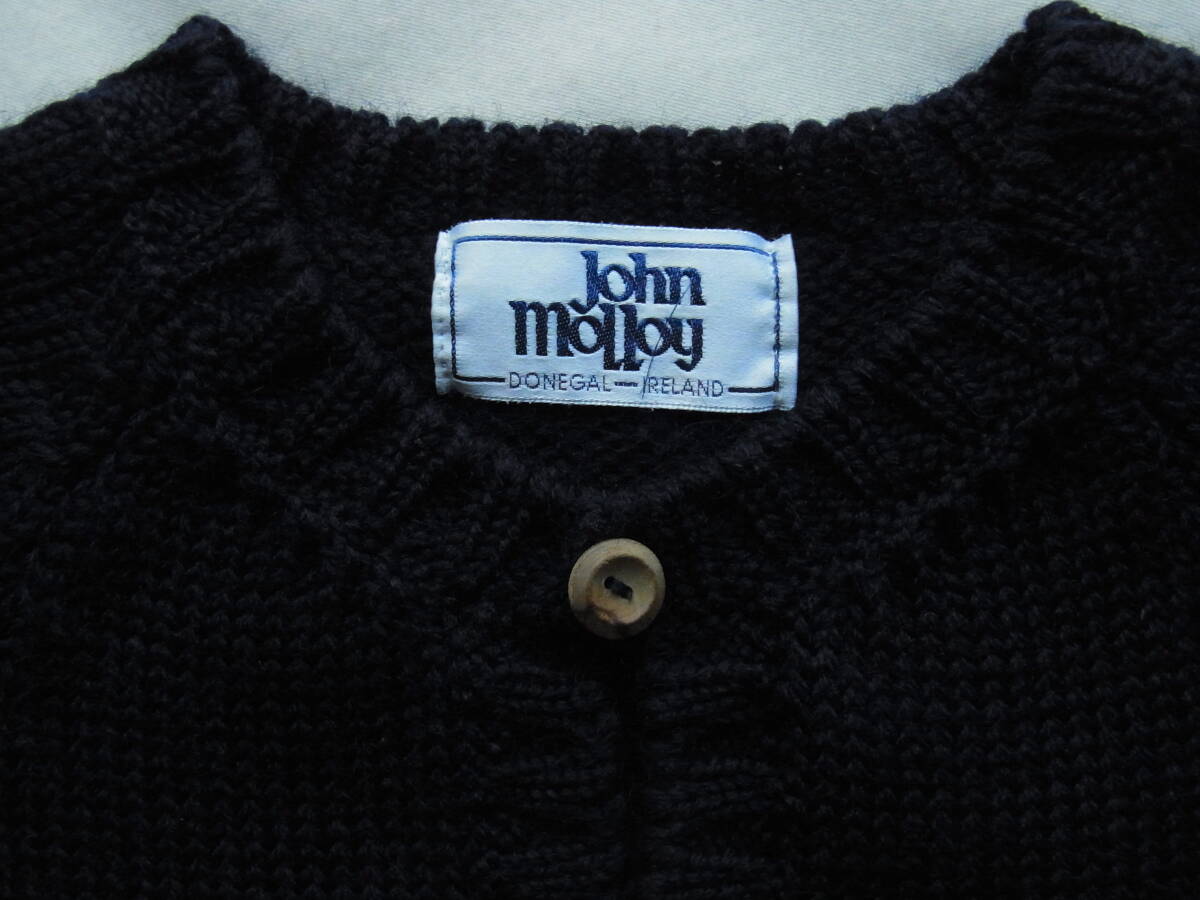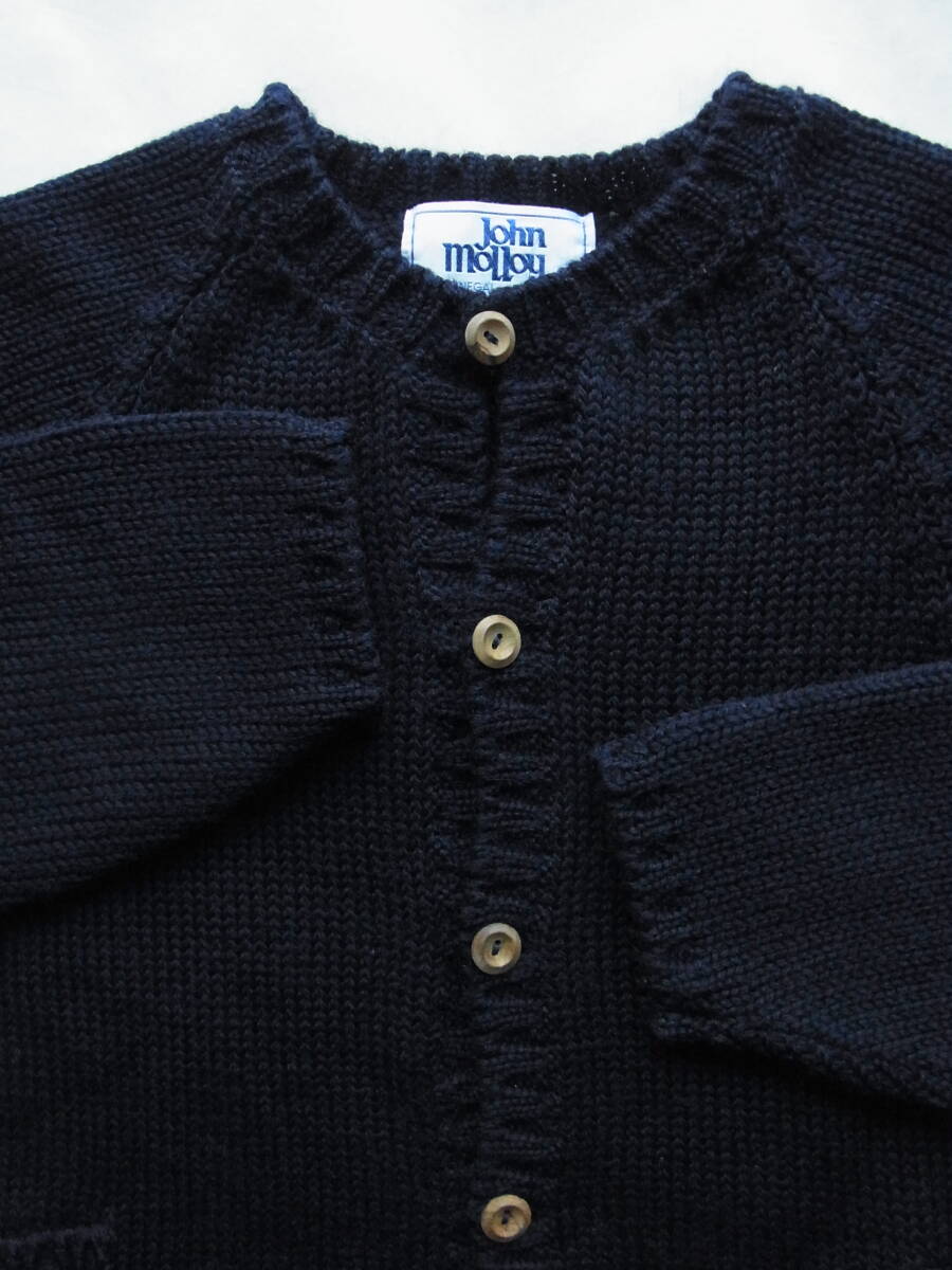 John molloy ジョン モロイ ウール100% ミドルゲージ クルーネックカーディガン ネイビー MADE IN IRELAND