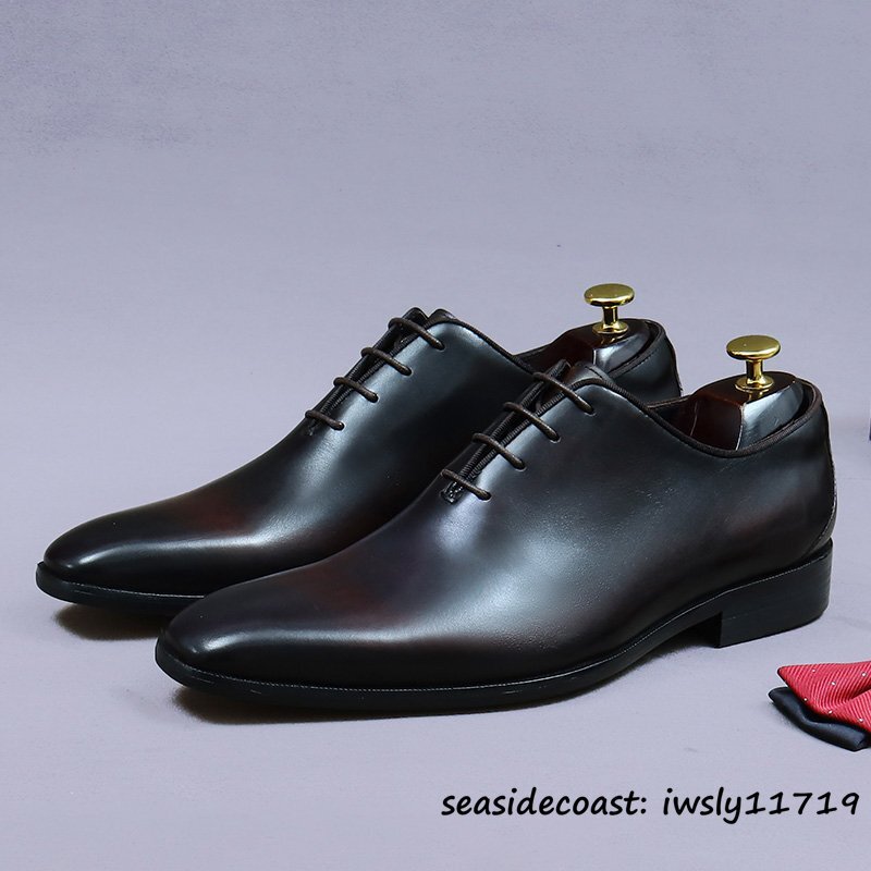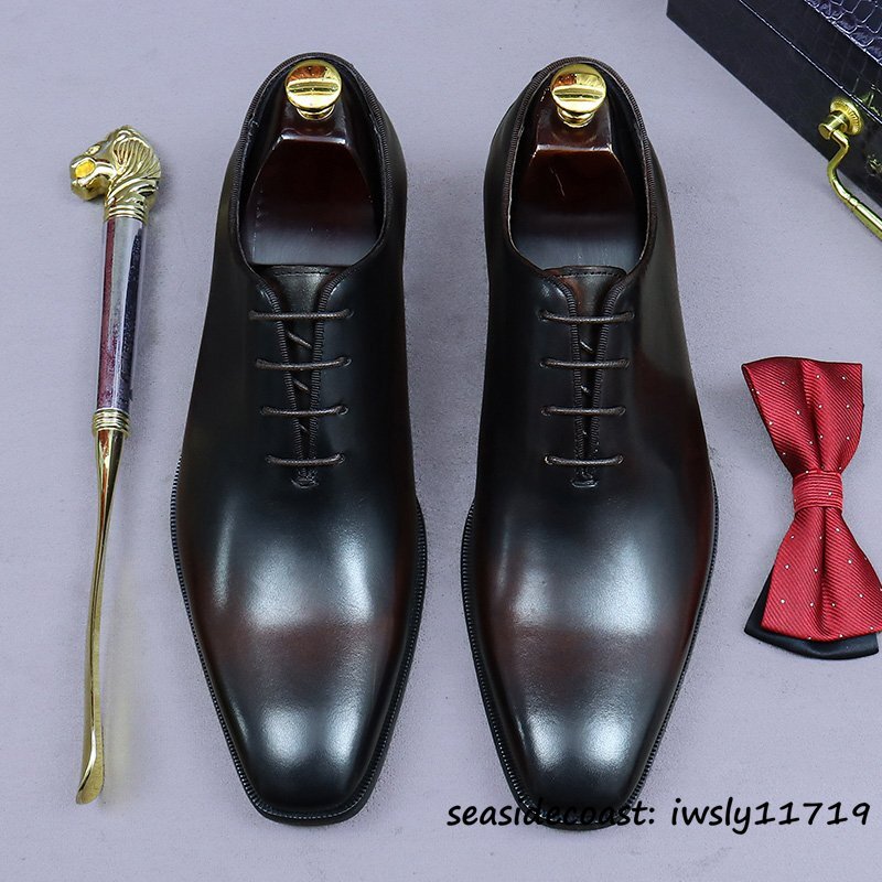 定価11万★最高級 本革 ビジネスシューズ メンズ イギリス風 職人手作り レザーシューズ 牛革 革靴 紳士靴 冠婚葬祭 新品 珈琲色 25.0cm
