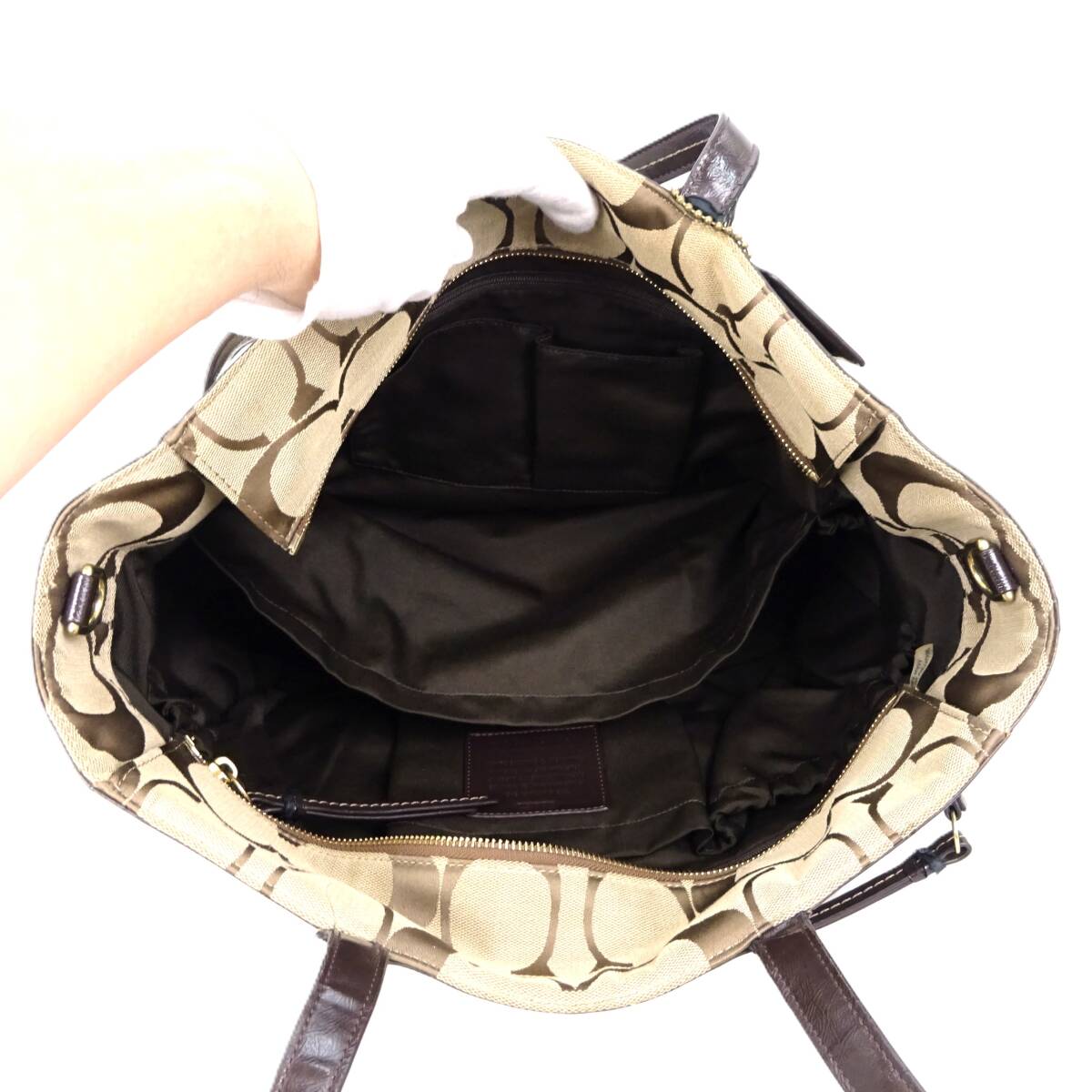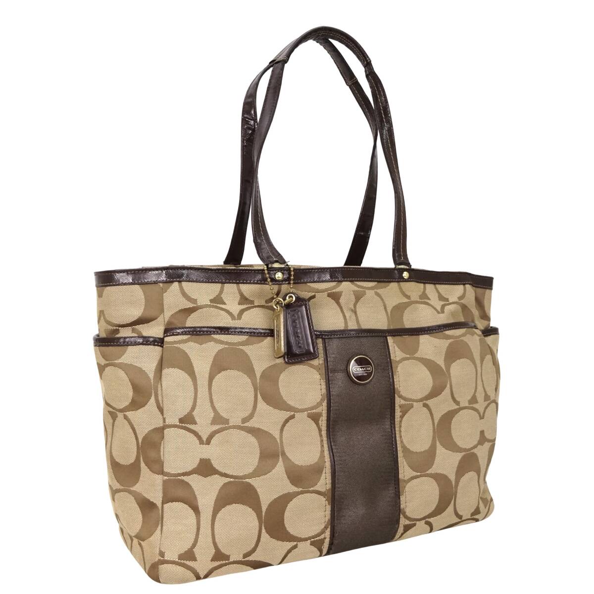 本物■コーチ■シグネチャー ストライプ マザーズバッグ ベージュ ブラウン ショルダートートバッグ ハンドバッグ /943101