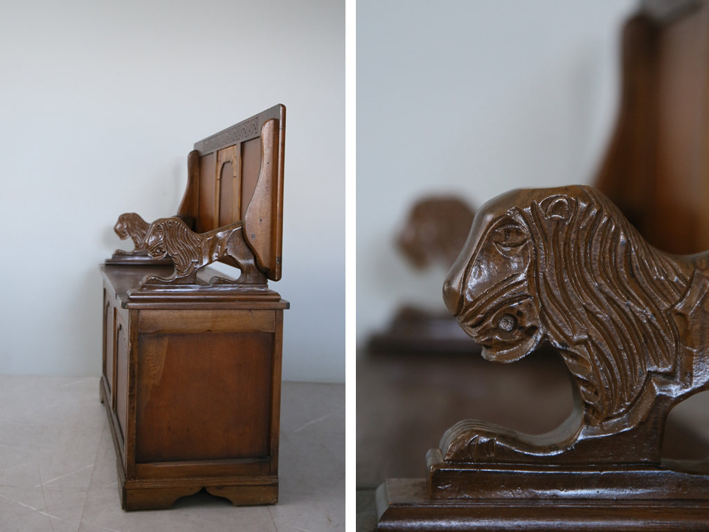 こちらのベンチはその昔、イギリスの修道院や教会で使用されていたベンチとなります。