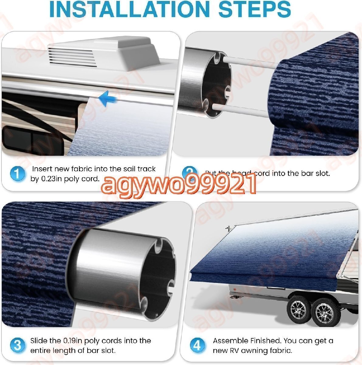 【数分で簡単設置】 - ポリエチレンロープを既存のRVオーニングのレールに差し込むだけです。詳細で分かりやすいマニュアルと関連チュートリアルビデオをご用意しておりますので、キャンピングカーのオーニング生地の交換が初めてでも、経験豊富なキャンピングカーユーザーでも、スムーズな設置プロセスを実現し、時間と労力を節約できます。[完璧なフィット感] - 9フィート2インチから20フィート2インチまでの様々なサイズをご用意しており、ほとんどのRVに適合します。ご購入前に、オーニングアームの中心から左右までの距離を測り、キャンピングカーに最適なサイズをお選びください。例えば、RVオーニングの長さが16フィートの場合、16フィートスタイル(生地の厚さ15フィート2インチ)をお選びください。