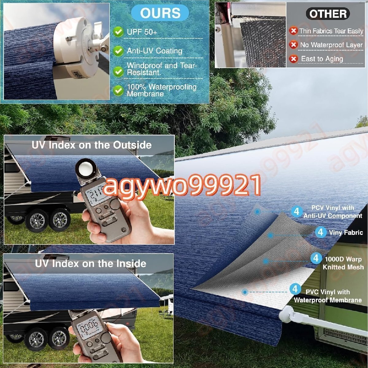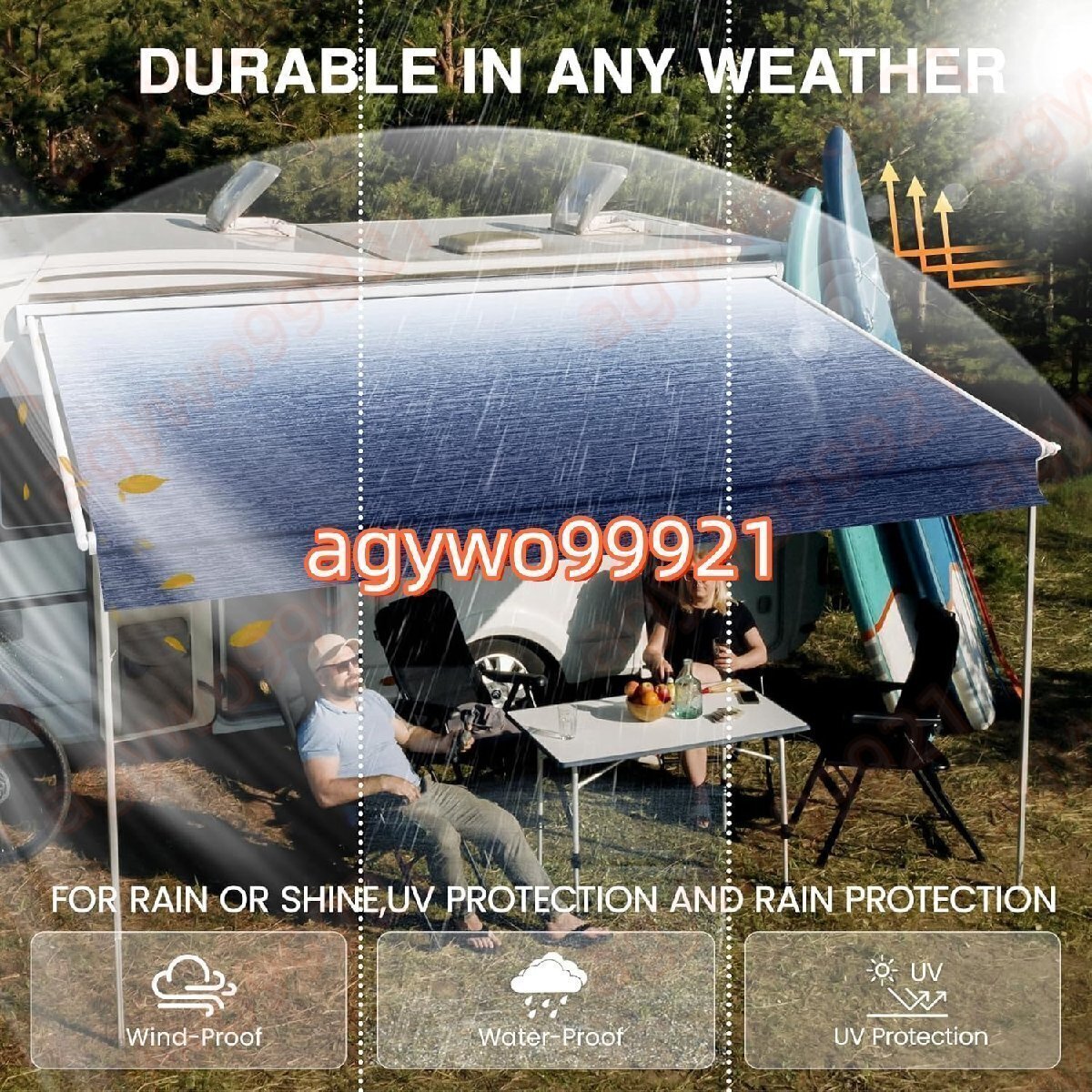 【優れた日差しと雨からの保護】 - 当社のキャンピングカーオーニング交換用生地は、高度なUVカット成分を使用し、UPF50+の保護性能を発揮し、紫外線を95%以上遮断します。100%防水メンブレンは最大2500mm(約2500mm)の耐水圧に耐え、大雨や突然の嵐の中でも涼しくドライで快適な状態を保ちます。