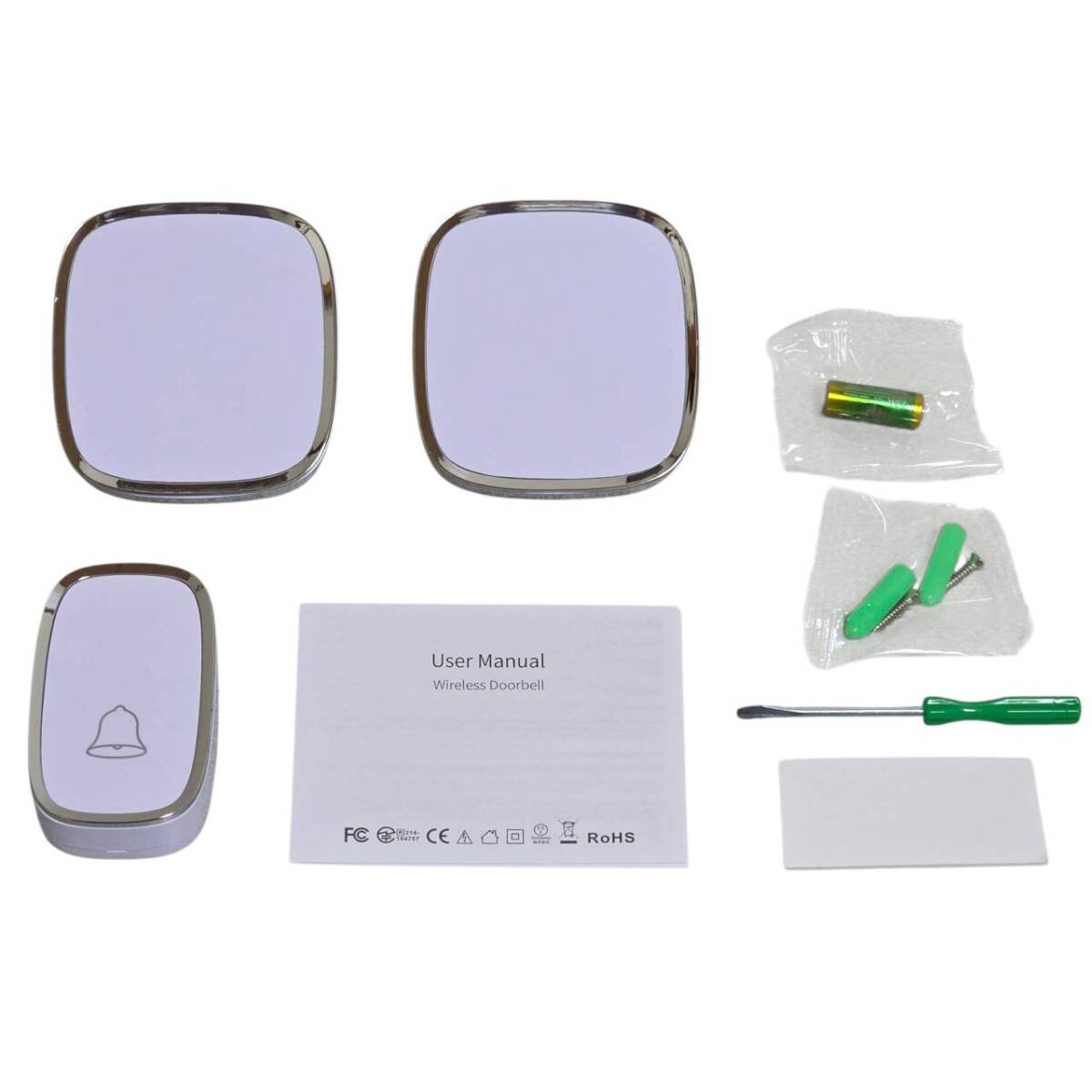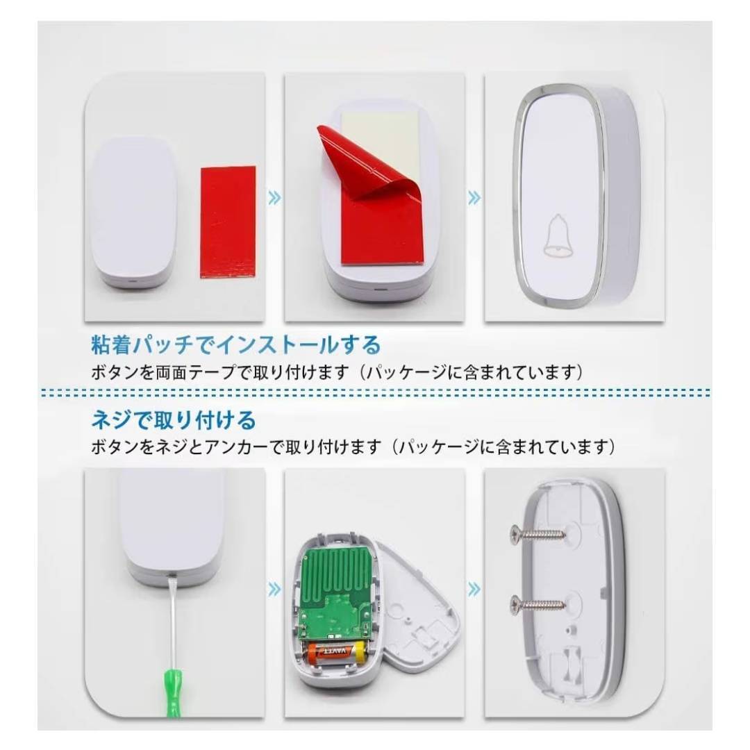 【1円オークション】ワイヤレス チャイム 玄関 呼び鈴 介護 浴室等 防水 ドアベル 36曲選択可 4段階音量調節 受信機2個 送信機1個 BAS2103