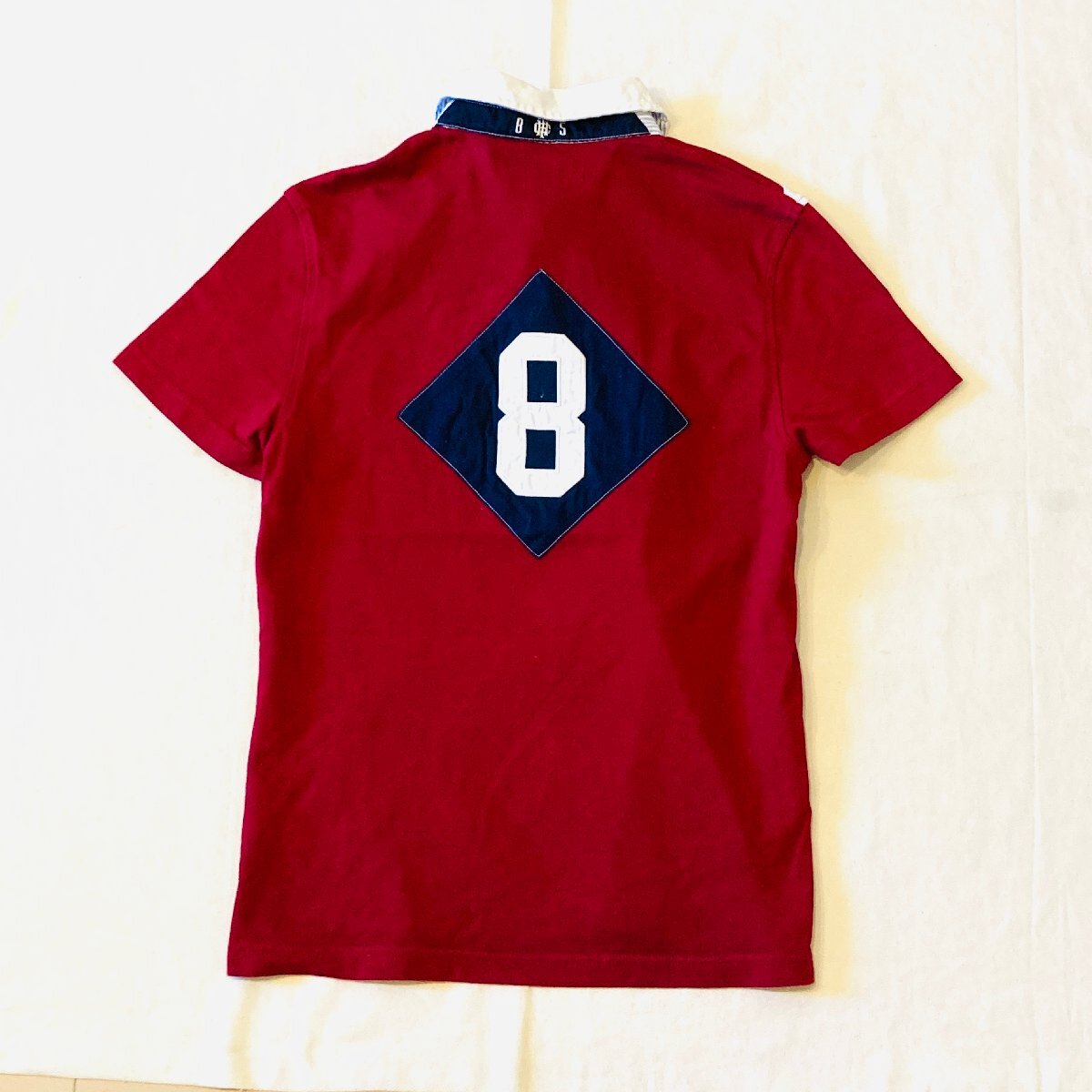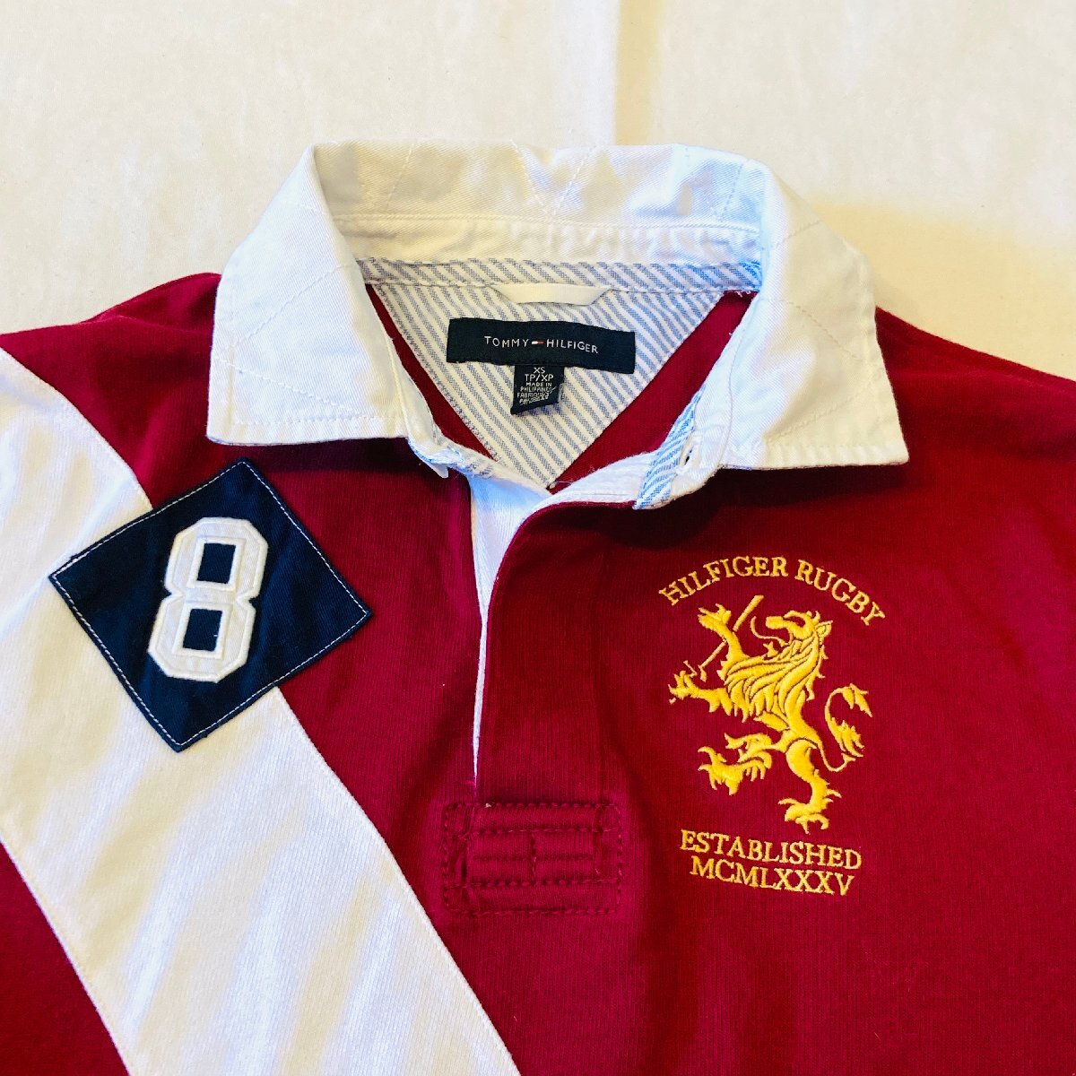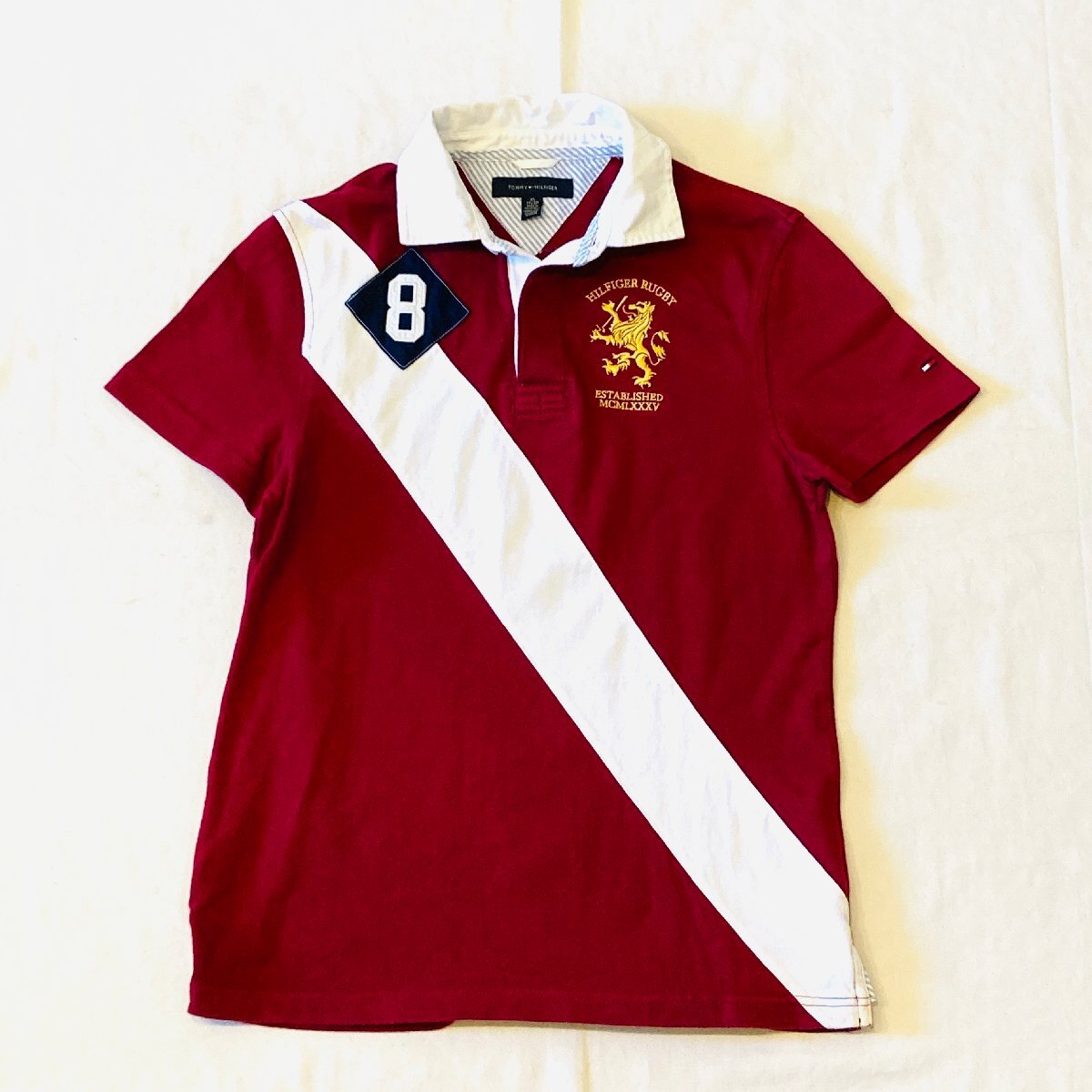 TOMMY HILFIGER トミーヒルフィガー 刺繍 デザイン ポロシャツ ボルドー/ホワイト