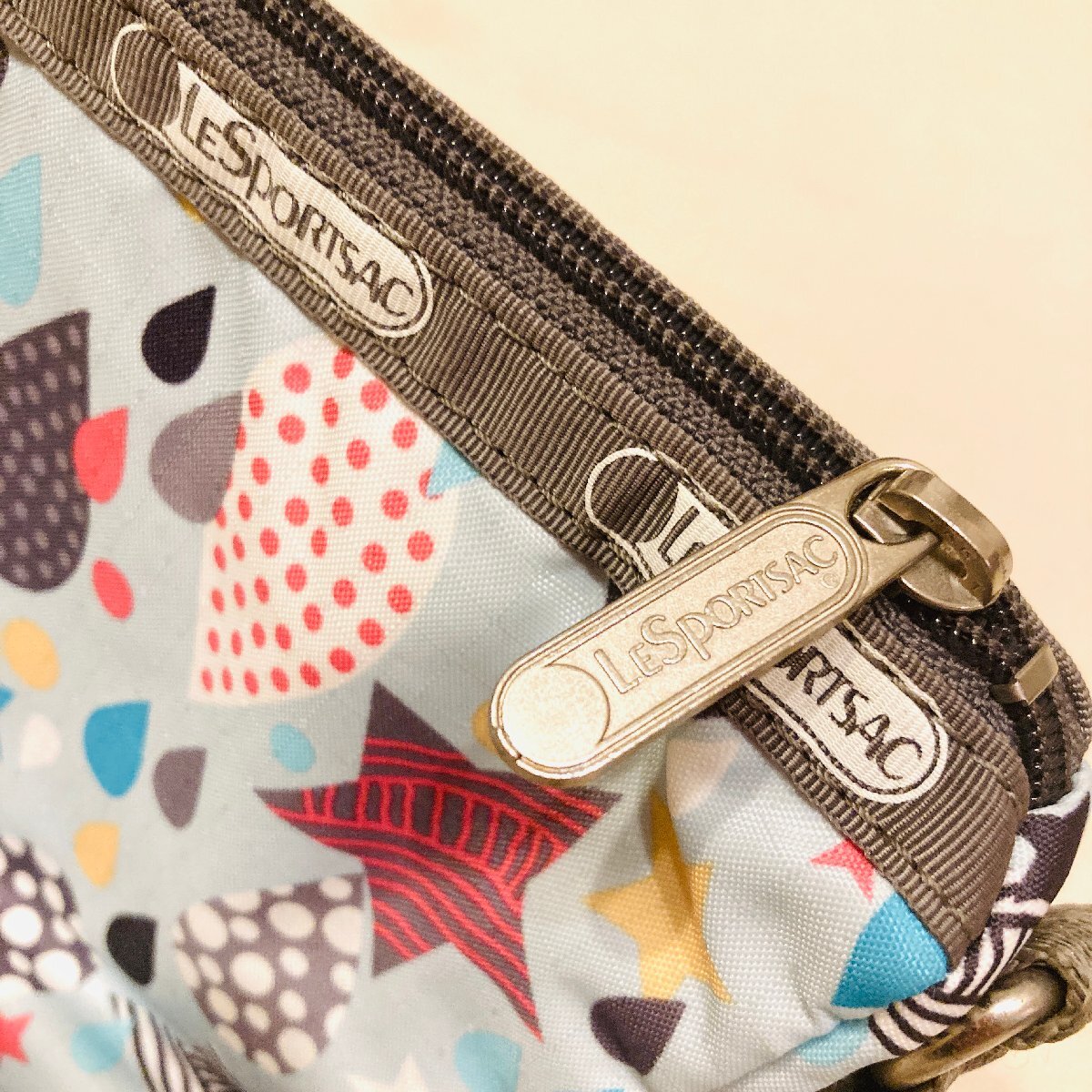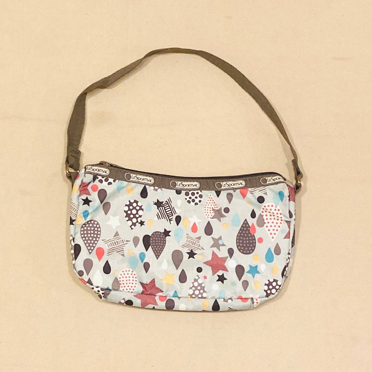 美品 LESPORTSAC レスポートサック ショルダー ボディ バッグ ライトブルー 水色 総柄