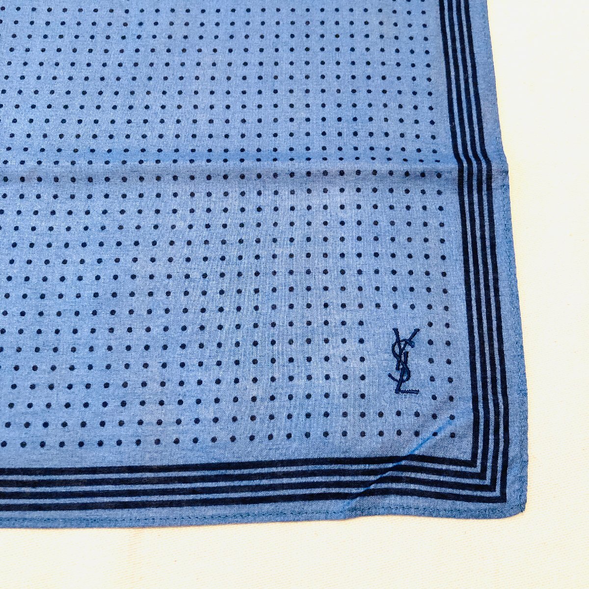 YVES SAINT LAURENT イヴサンローラン ドット デザイン ハンカチーフ ネイビー系 45 × 46cm