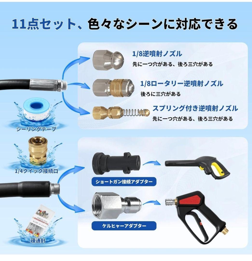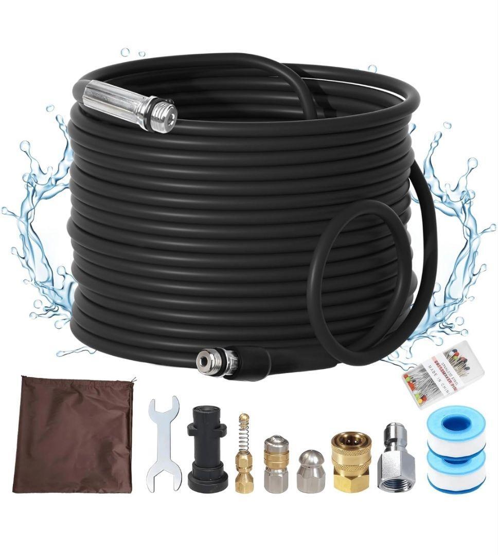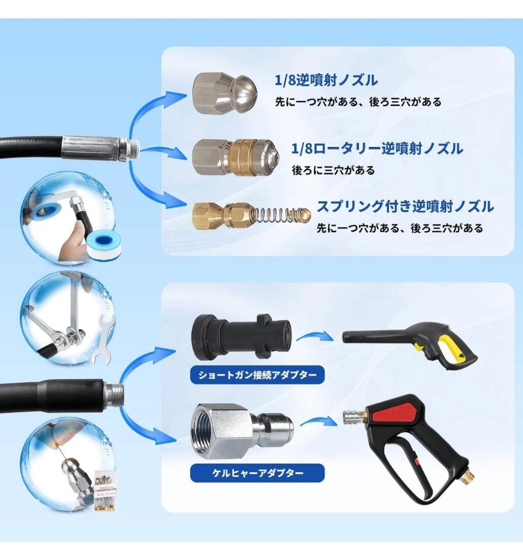 20mのホースになります。 ブランドAkitsuba 色Black 商品の寸法10長さ x 0.1幅 cm 商品の重量750 グラム 外径12 ミリメートル 商品長10 センチメートル 【市販品よりもっと強い清掃能力】Akitsubaケルヒャーパイプクリーニングホースは3種類スプレーノズルを持ち、高圧洗浄ホースの清掃と推進能力を備えています。逆噴射ノズルとロータリーノズル先端は平やらな形を改善して尖った形で採用しています。狭いところ、エルボーの入りをもっと易くなります。スプリング付き逆噴射ノズルにはスプリング先端に有り、ごみを分解しながら前に進めます。孔からと異なる方向から、水を噴射します。これによってパイプは圧力落ず、複雑な配管、枝管から本管まで、配管内の汚れ・詰まりを綺麗に洗浄します。 【優れる材料を使用】Akitsubaケルヒャーパイプクリーニングホースは配管洗浄ホースはPVC素材、表面は高品質ゴム、真ん中は鋼線と繊維でできた防爆層、内層はPU素材です。 圧力を落ない、ねじれにくい硬さを持ってる同時に自由に伸びる柔らかさもあります。最大18 MPaに耐える厚いポリエチレンを採用して、耐久性も強いです。また配管が詰まった時、業者を呼ばなくても自分でやれます!もっと経済的です! 実物の写真は8枚目以降になります。説明と異なる場合がありますので、必ず写真をご確認ください。不明点はコメントくださいませ。 訳あり品のため、箱潰れ・ビニール破れ・開封痕・指紋などがある場合がございます。簡易検品のため、使用感や部品不足を見落としている可能性もあります。 完品をお求めの方はご希望に添えない場合がございます。 Amazon参考価格:5180円 即日発送(最安発送方法に変更あり) フォロー+購入希望コメントで100円お値引き ご購入前にプロフィールをご確認ください。 管理番号14 |