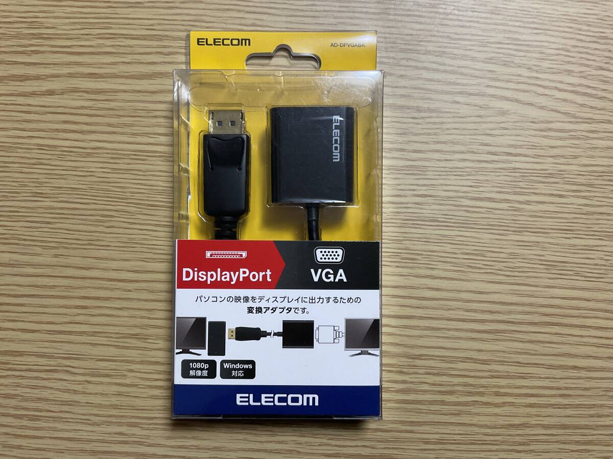 ELECOM製のDisplayPort→VGA変換アダプタ「AD-DPVGABK」です。