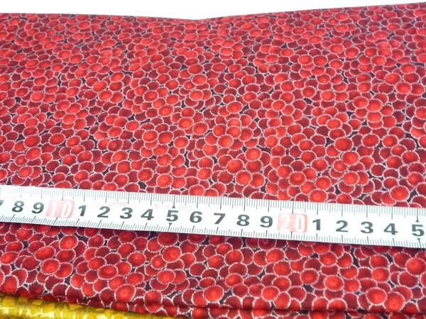 100*50★赤・銀・丸柄の・ハギレ・生地・布★0506-30