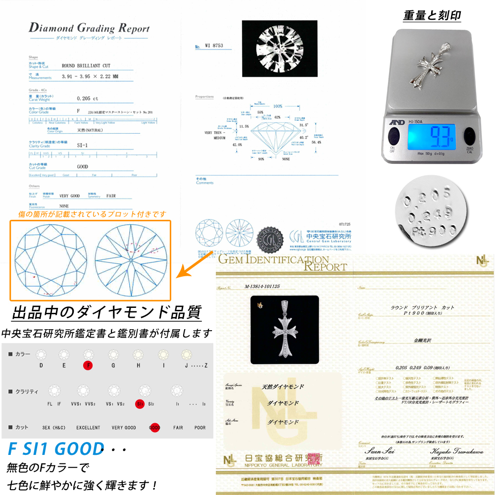 | 品質について | 日本で一番支持されている中央宝石研究所の鑑定書付きです!センターダイヤ 0.205ct F SI1 GOOD 鑑定書写真の品質もご参照ください! サイドダイヤ 0.249ct※無色で照りの良いダイヤモンドです。 ダイヤモンド三角バチカン 0.09ct |