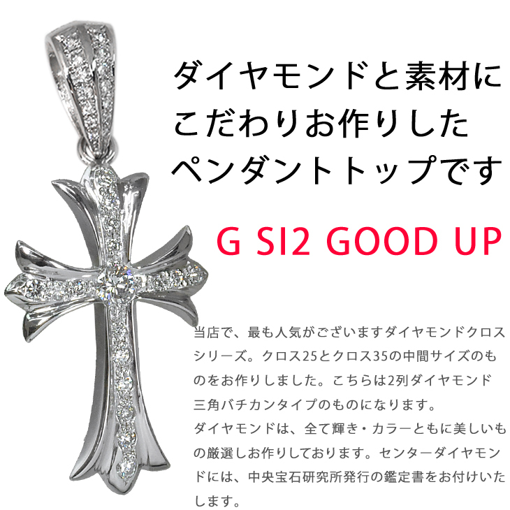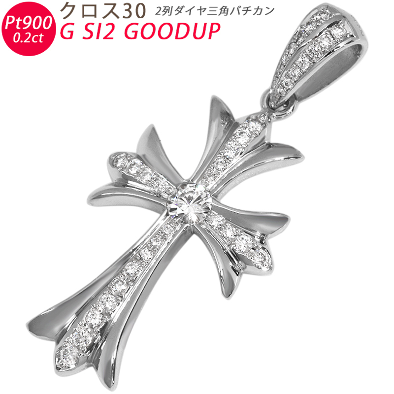 | 商品名 | Pt900 ダイヤモンド ペンダントトップ クロス30 ダイヤモンド三角バチカン ※クロス30のバチカンサイズ(内径)を大きくして、表にはダイヤモンドを2列に施しより太めのチェーンが通るように作成致しました! |