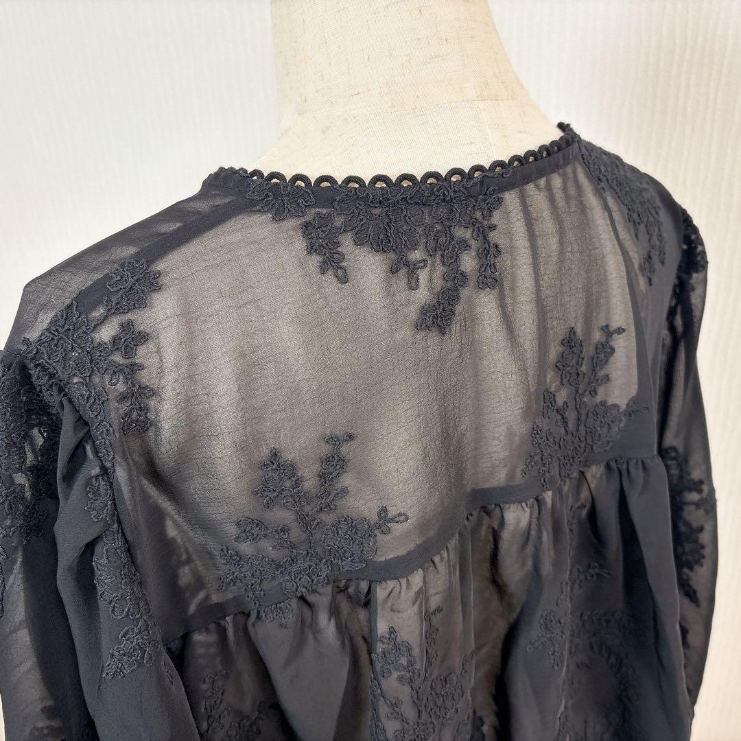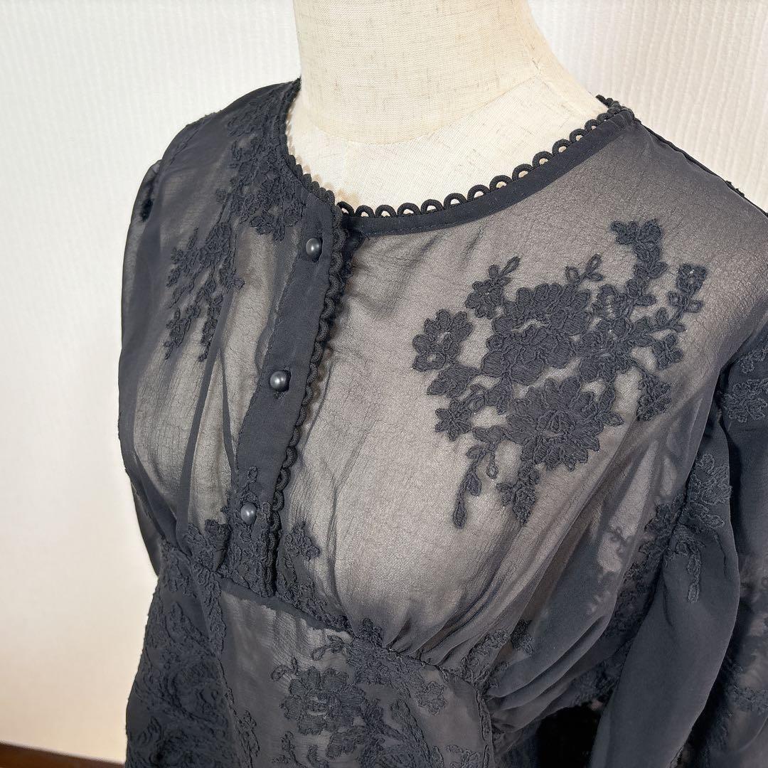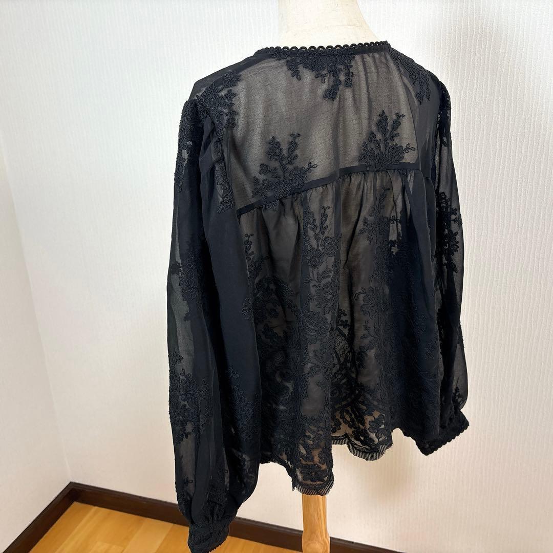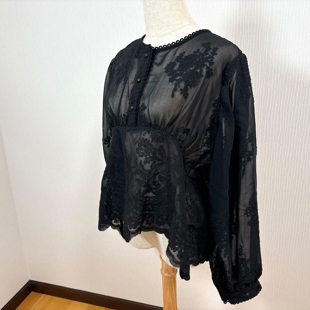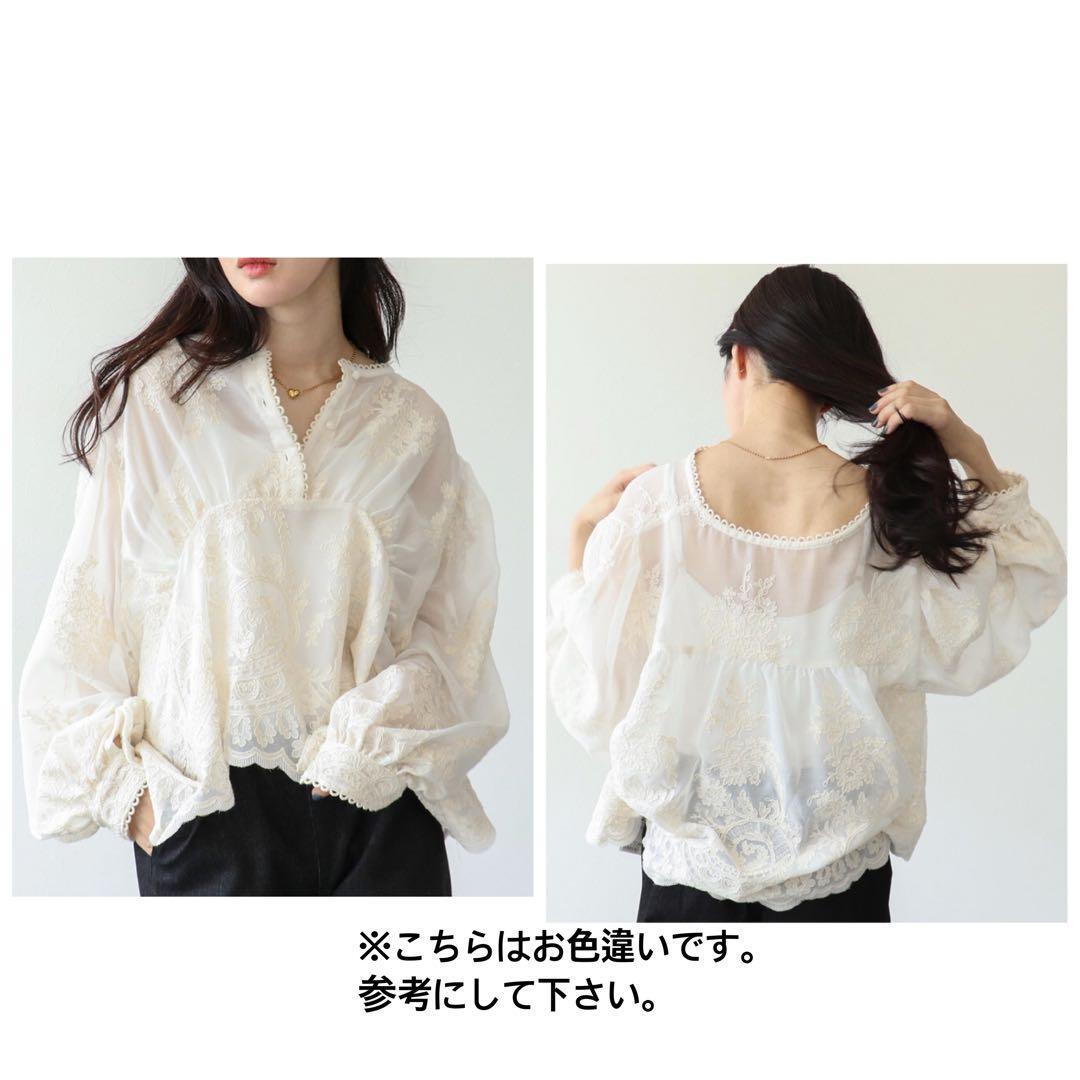 繊細なシアー感が大人っぽいフラワーレースブラウス。総レース素材で、すっきりとしたノーカラーデザイン。コロンとしたマッドなブラックボタンも可愛いです。オケージョンシーンにも活躍◎デニムと合わせるのもおすすめです。