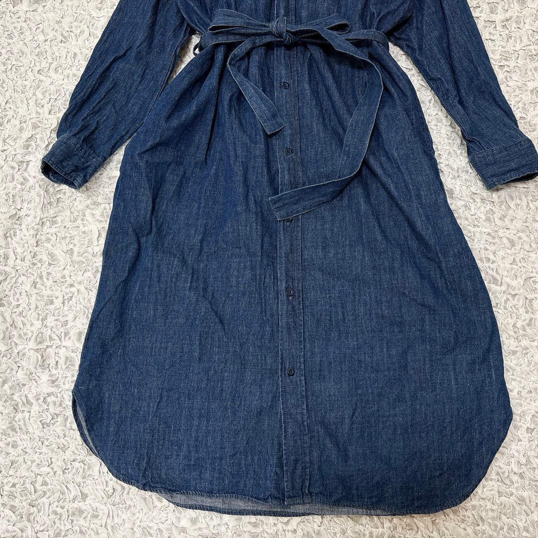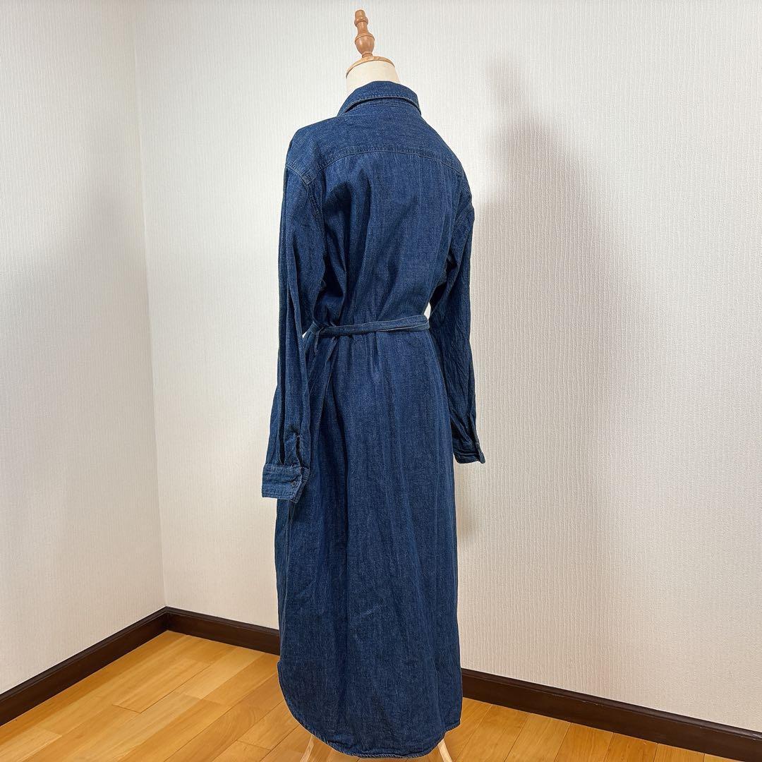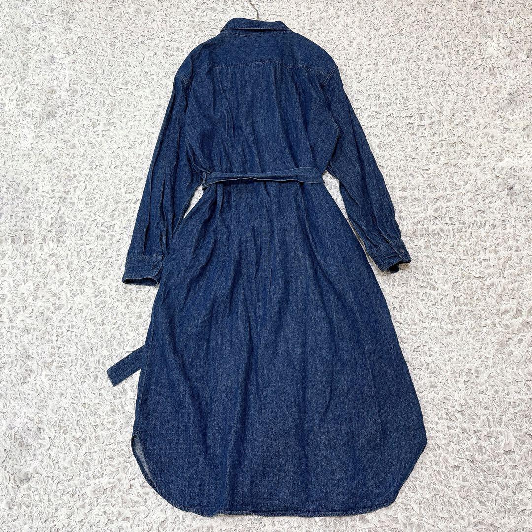 デニムワンピース ロングワンピース 長袖 マキシ丈 シャツワンピース ブルー