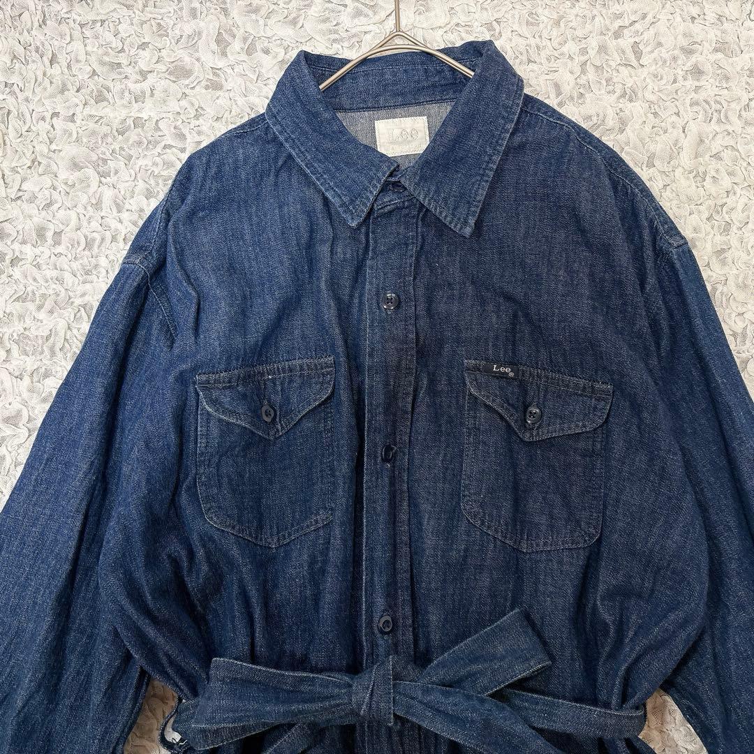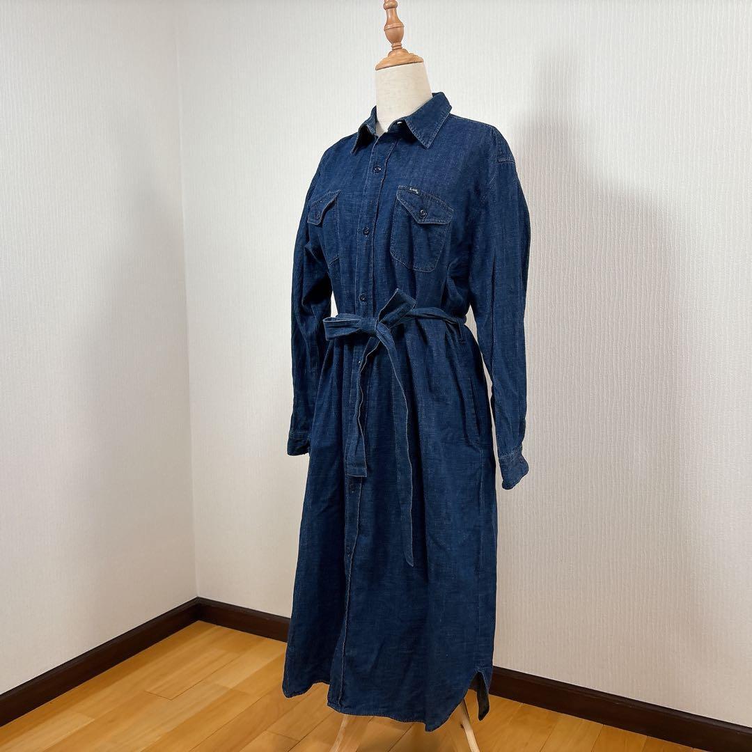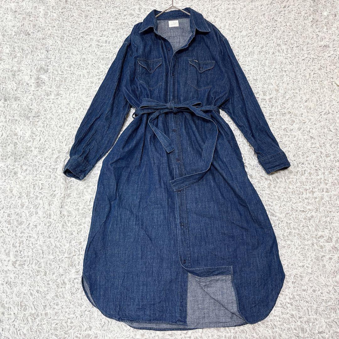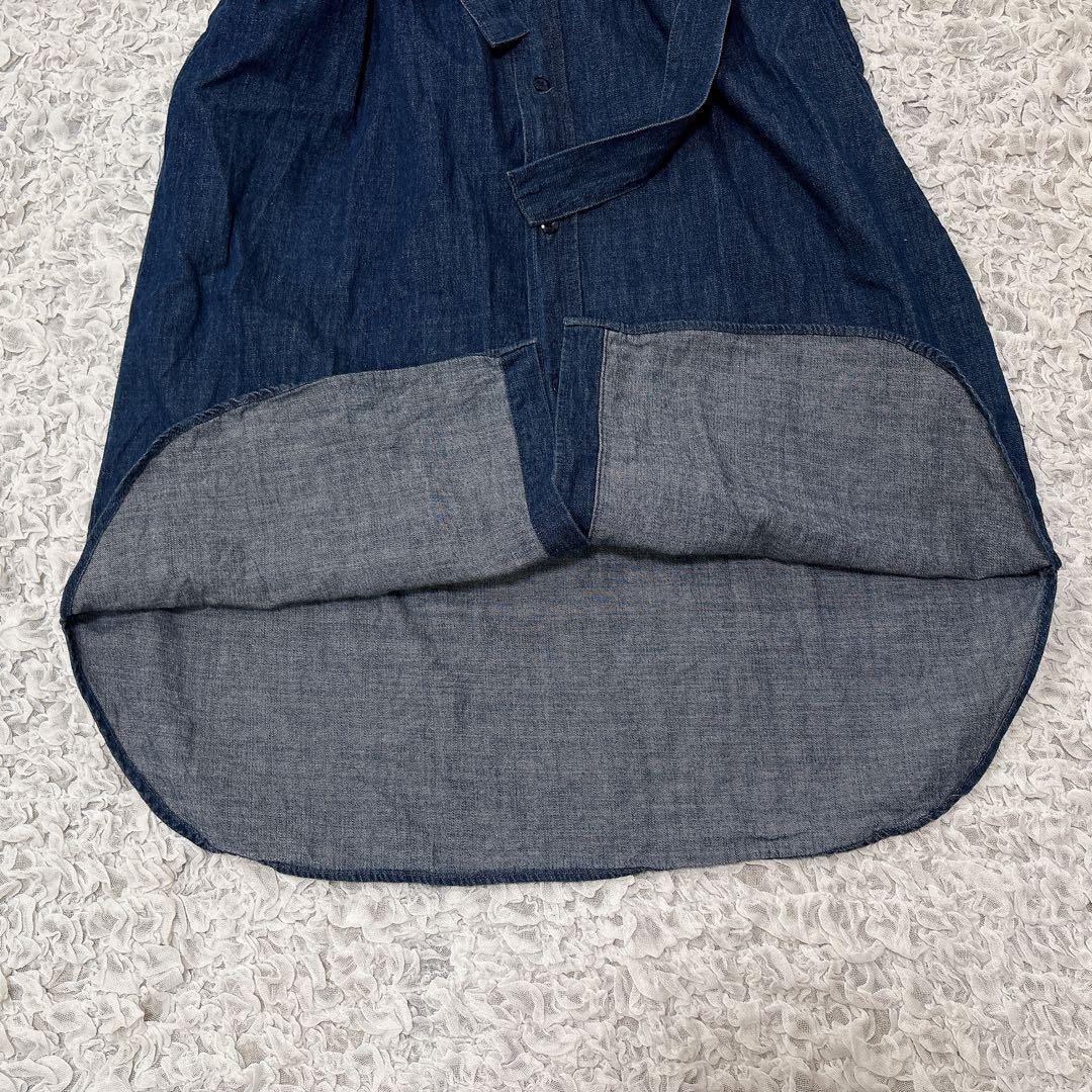 デニムワンピース ロングワンピース 長袖 マキシ丈 シャツワンピース ブルー
