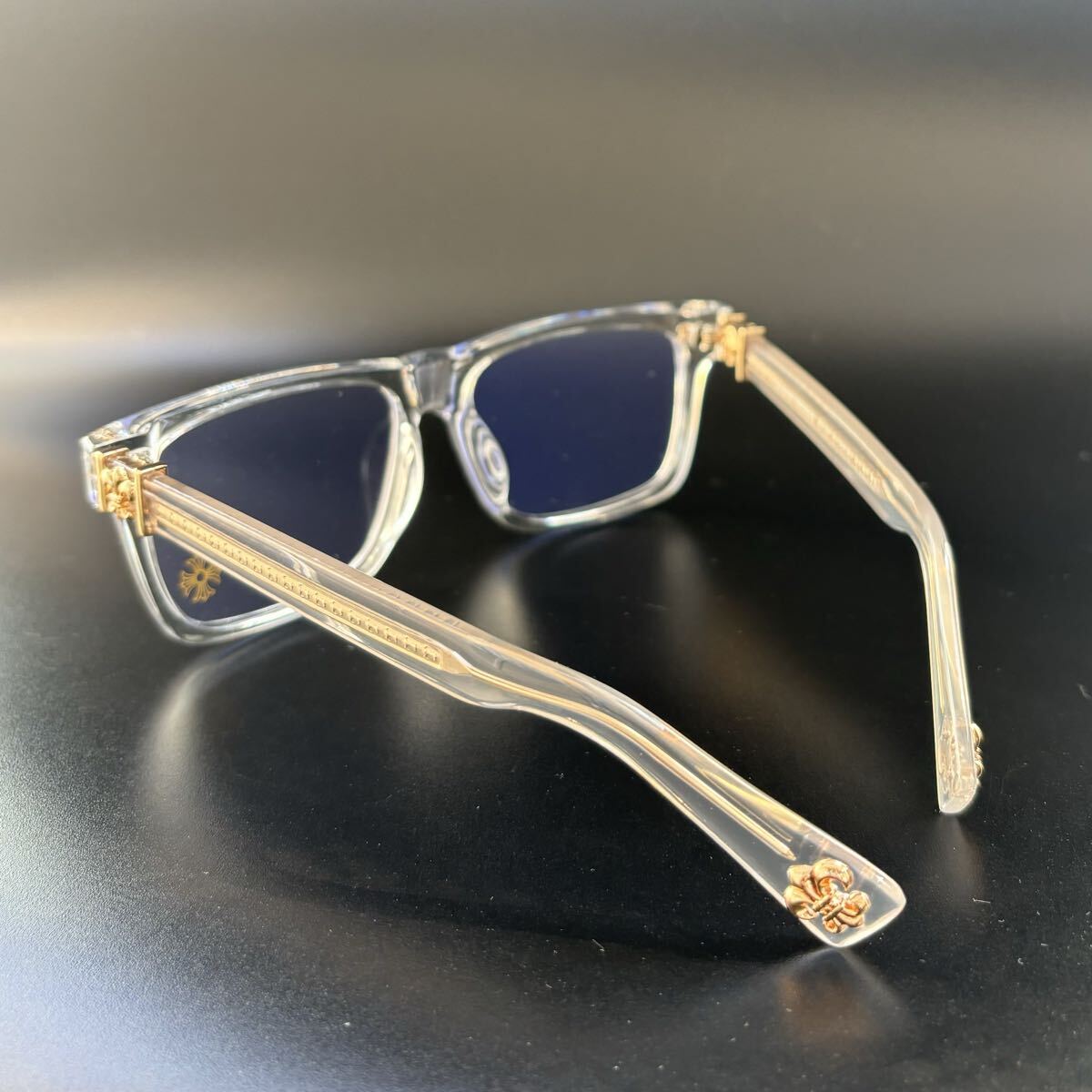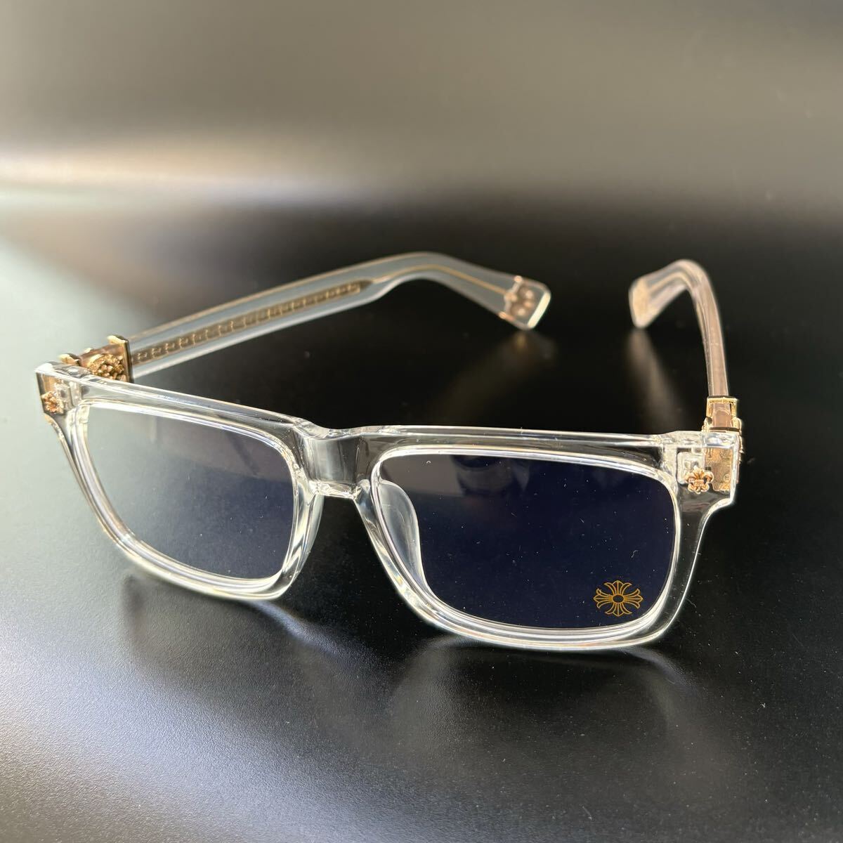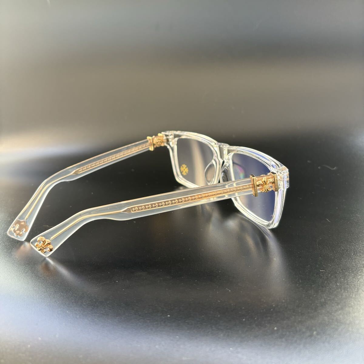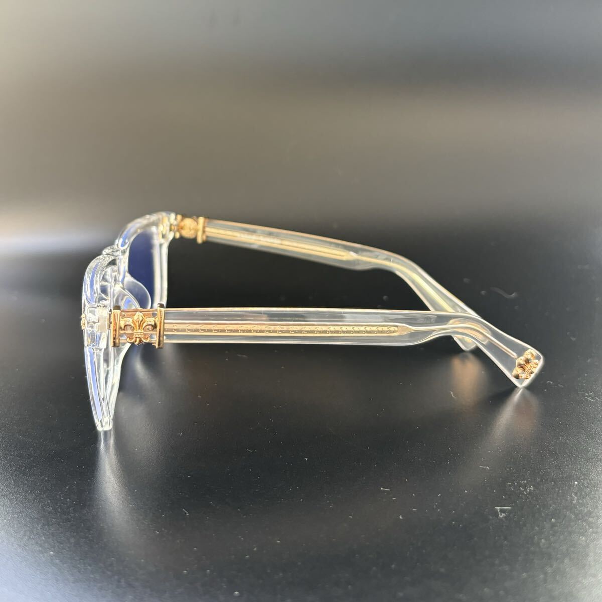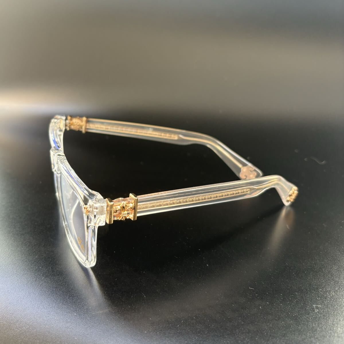 クリアフレームにゴールドのテンプル(つる)を組み合わせることで、洗練された印象と高級感を演出します。男女兼用で、カジュアルからフォーマルまで幅広いスタイルにマッチ。