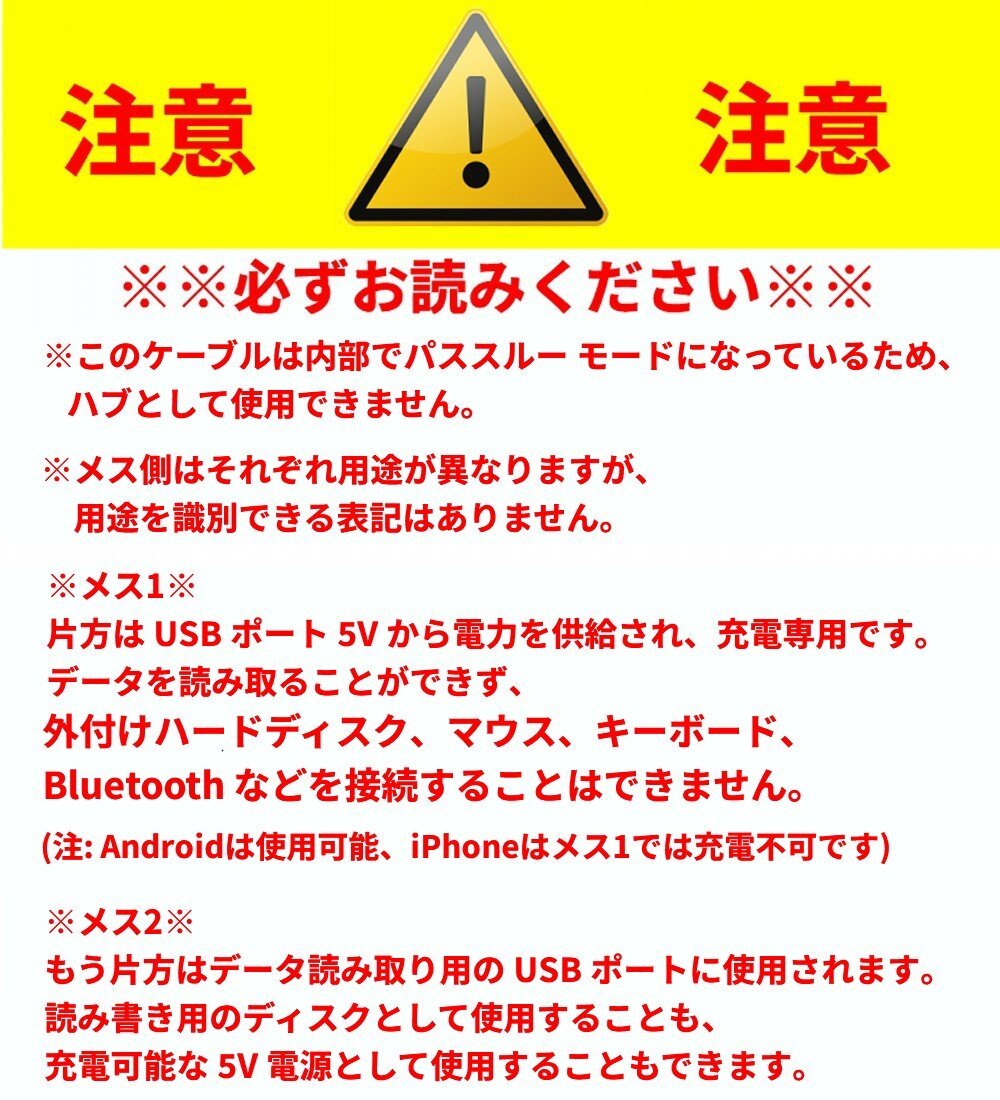 | データ転送+充電と充電のみを使い分けられる二股USBケーブルです。 |