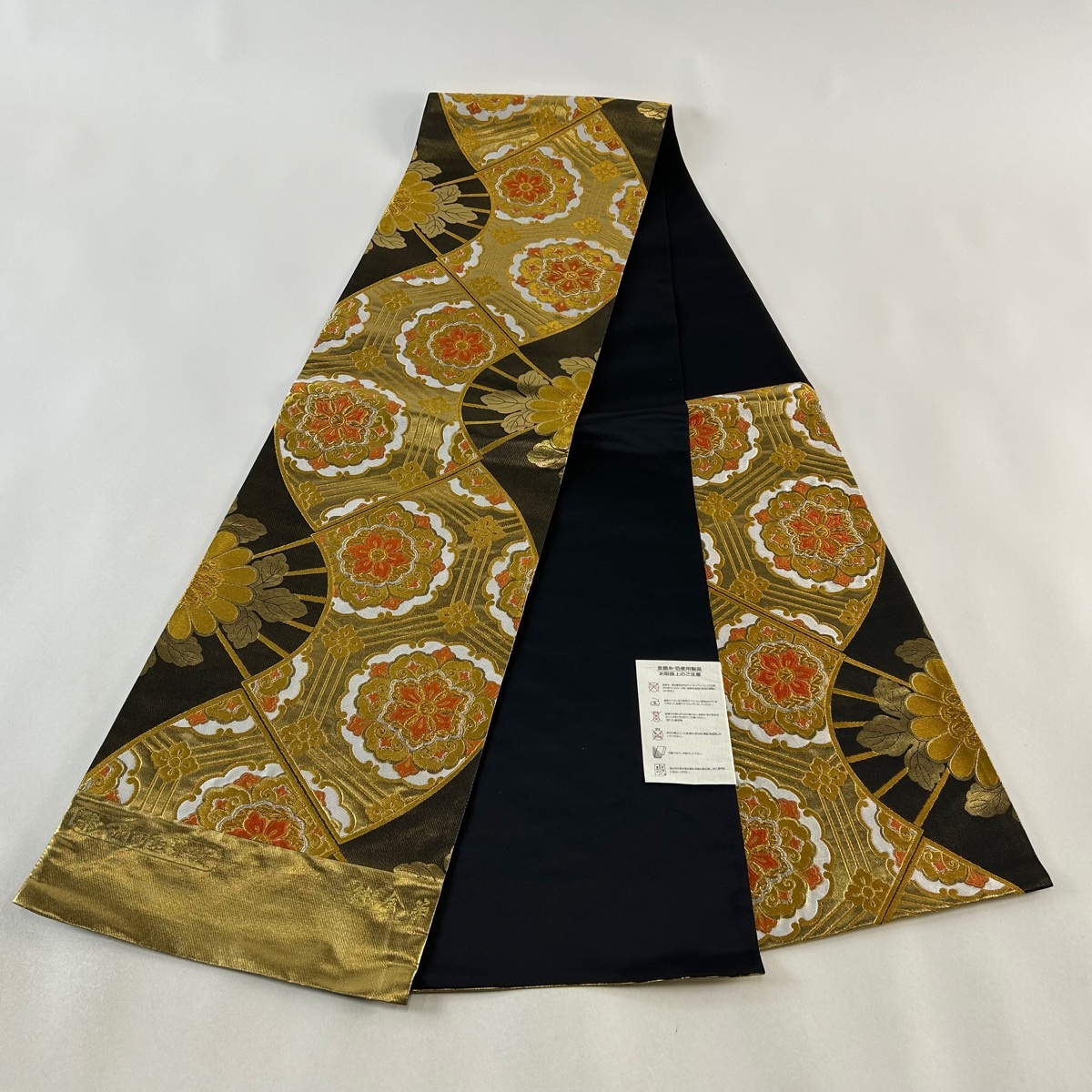 | 袋帯 美品 名品 落款 証紙 まいづる 扇面取華紋 金銀糸 箔 金色 六通 正絹 【中古】 |