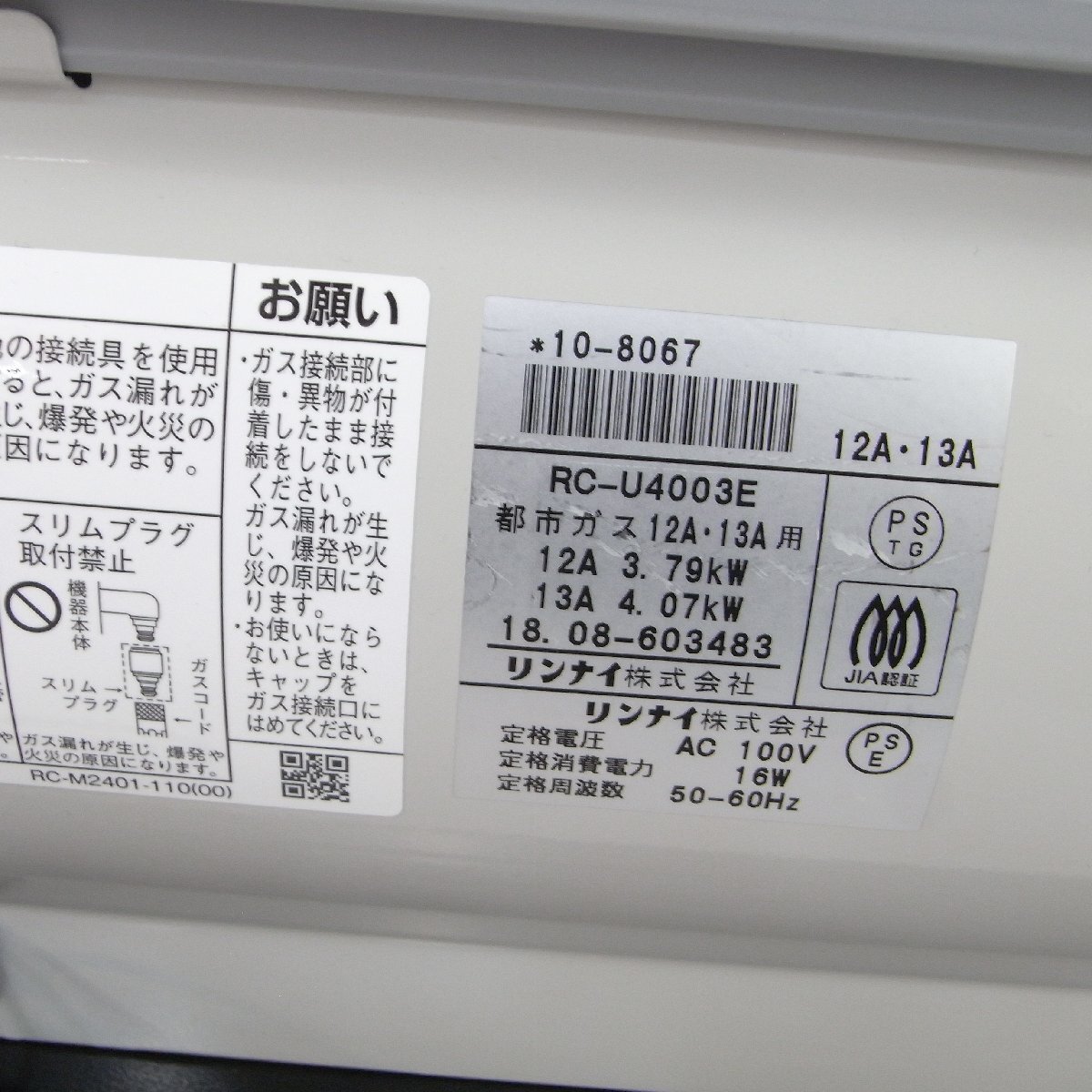 | 商品 | 東邦ガス リンナイ 都市ガスファンヒーター 12A 13A ~15畳 RC-41FHD |