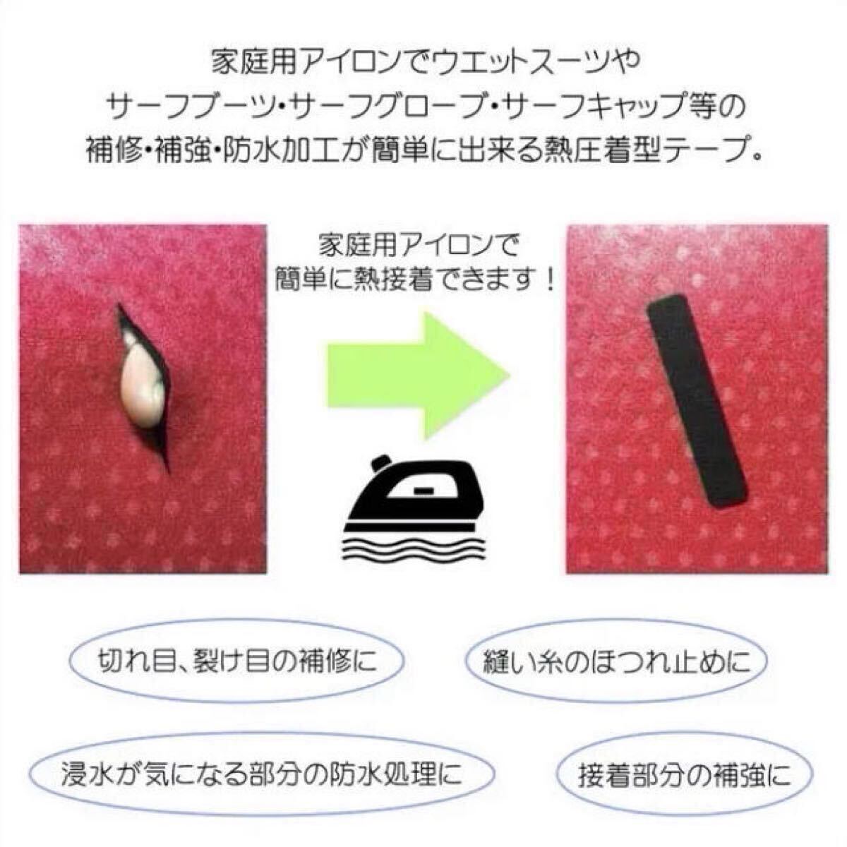 家庭用アイロンでウエットスーツやサーフブーツ・サーフグローブ・サーフキャップ等の 補修・補強・防水加工が簡単に出来る熱圧着型テープ